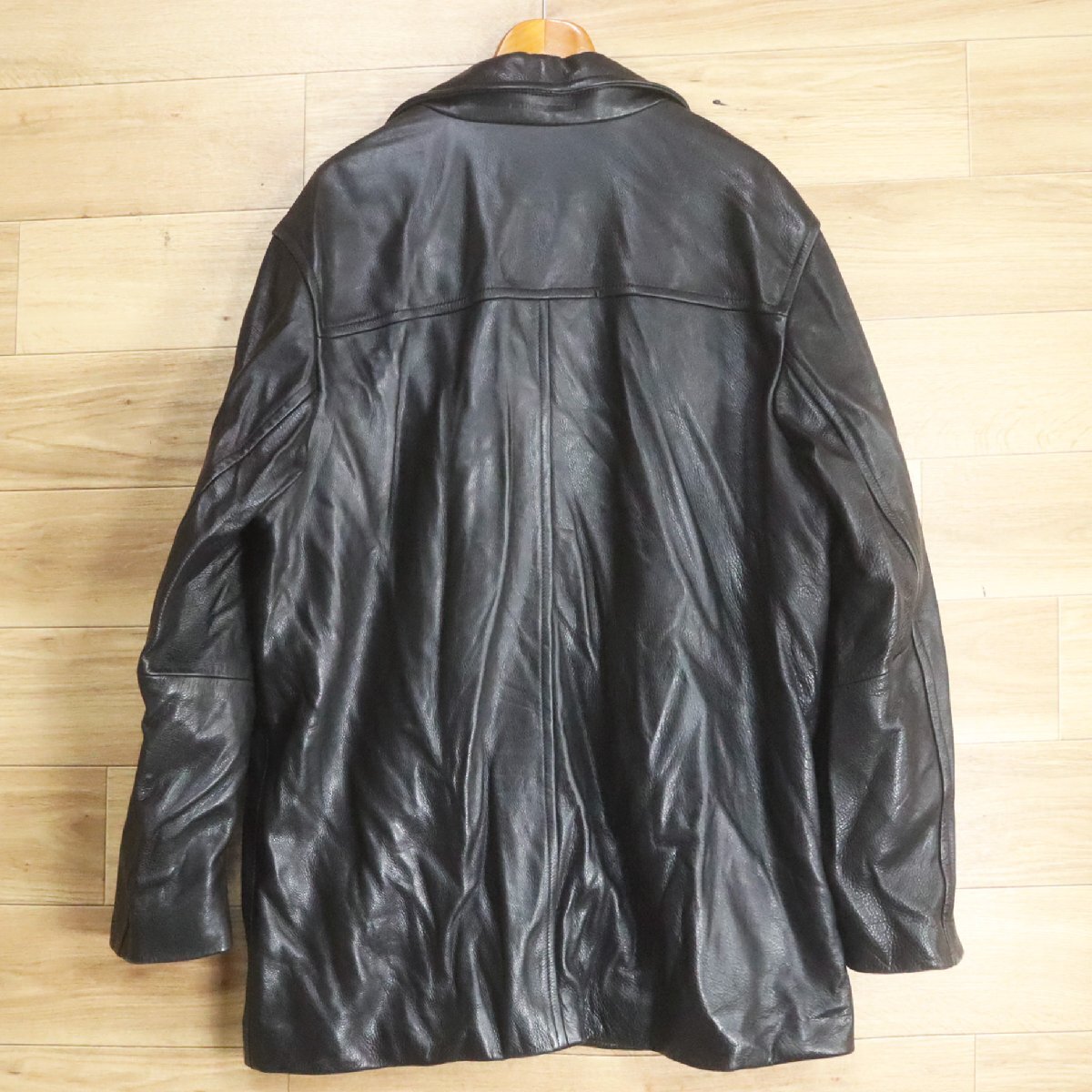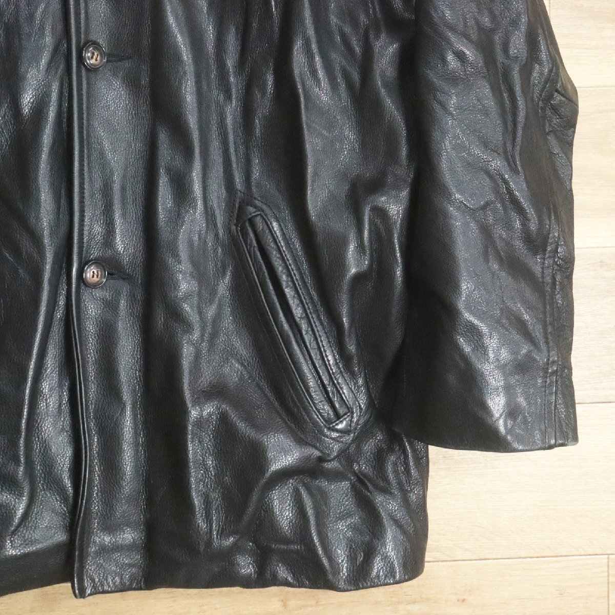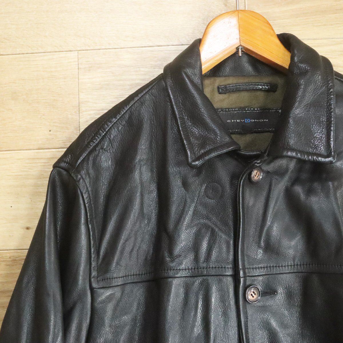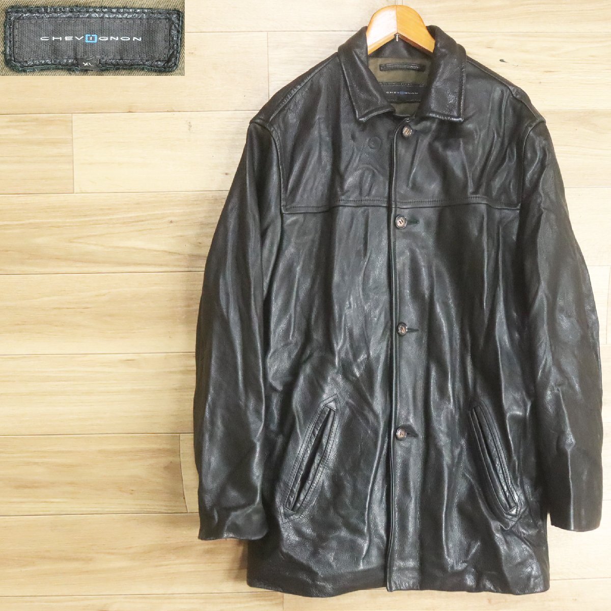 F2S/S8.18-2 CHEVIGNON シェビニオン レザーカーコート 本革 レザージャケット ハーフコート メンズ XL ブラック 古着
