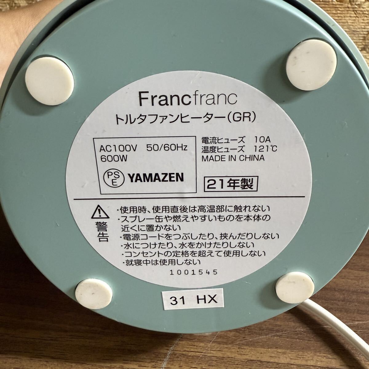 Francfranc フランフラン トルタファンヒーター 2021年製 暖房器具 コンパクトサイズ 動作確認済み 中古品