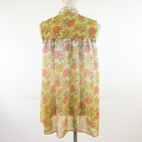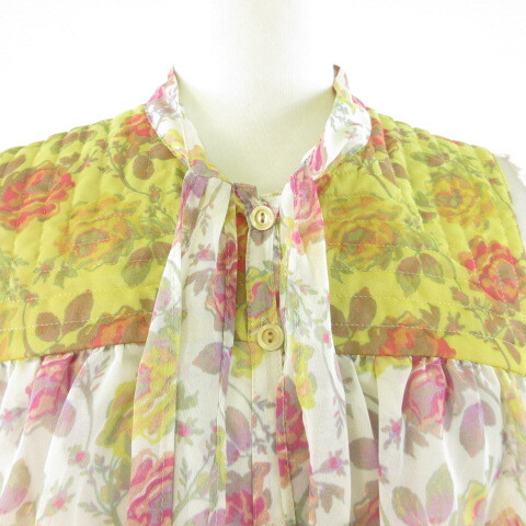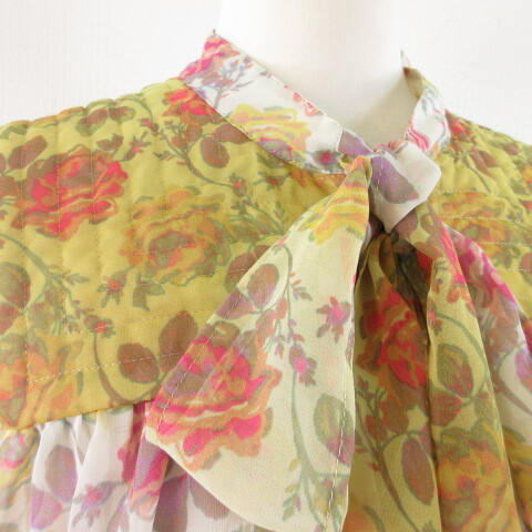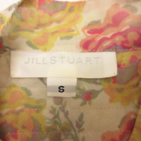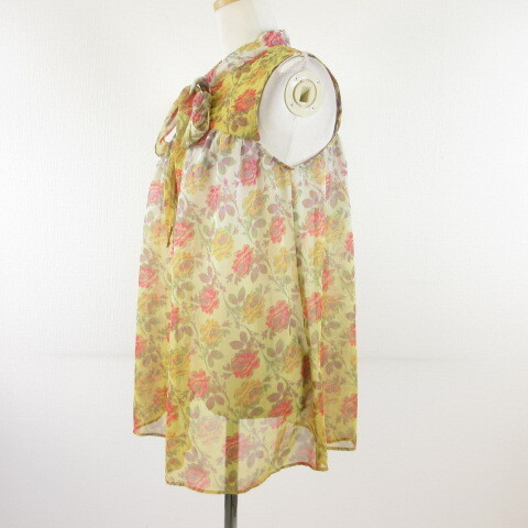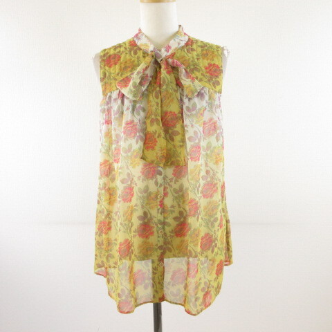 ジルスチュアート JILL STUART シャツ ブラウス ノースリーブ ボウタイ リボン 花柄 黄 オフホワイト S *T252 レディース