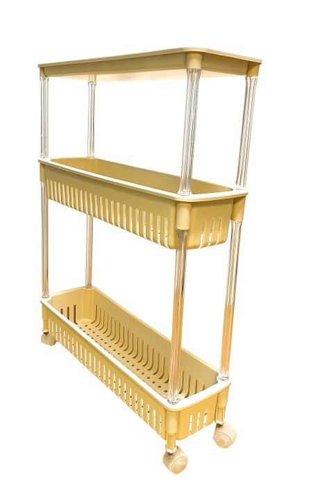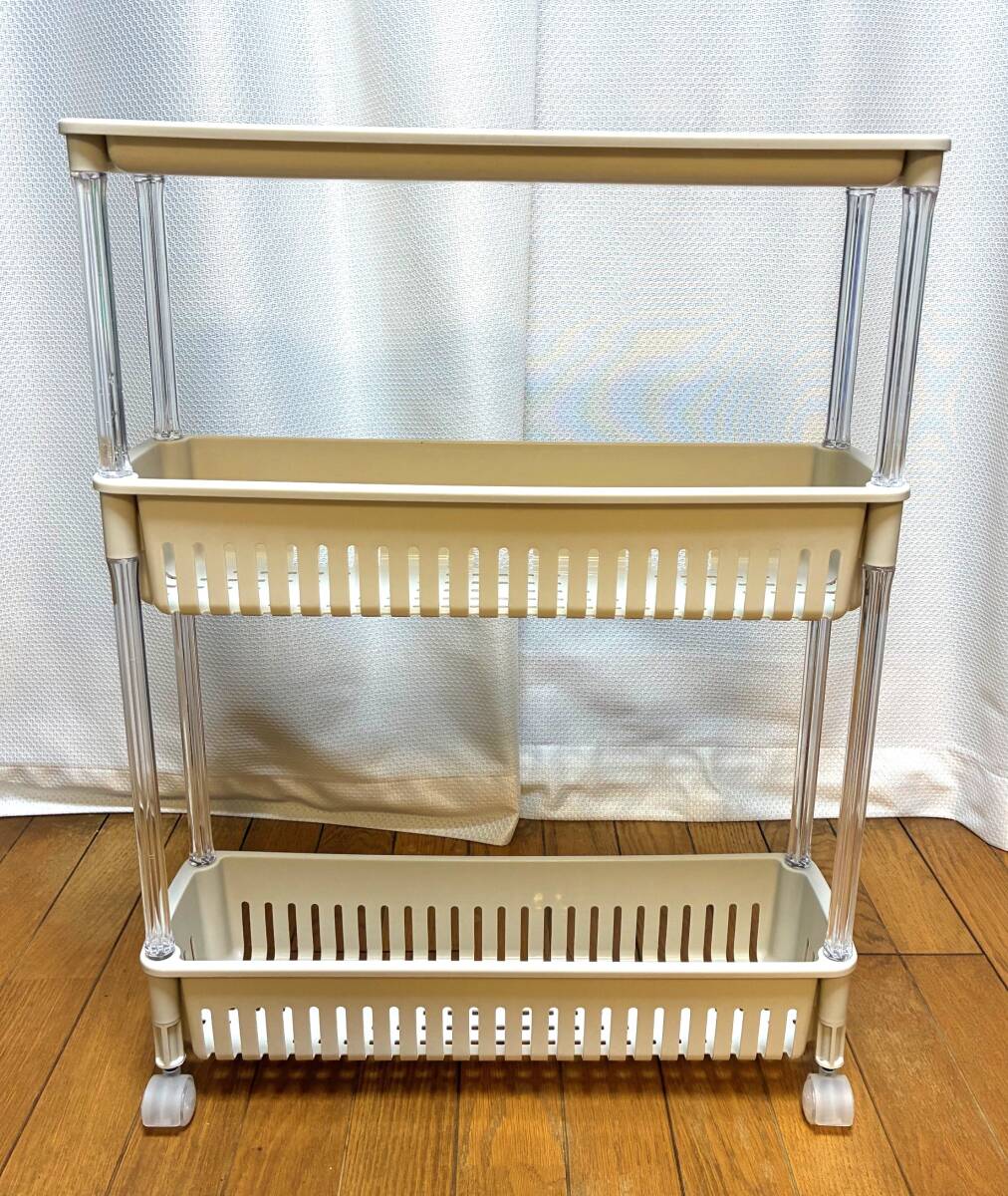 【美品】3段 キッチンワゴン キャスター付き 収納ラック ベージュ スリムタイプ 日本製 高さ 約65.5㎝ 幅15㎝ 奥50㎝ 要組立品です