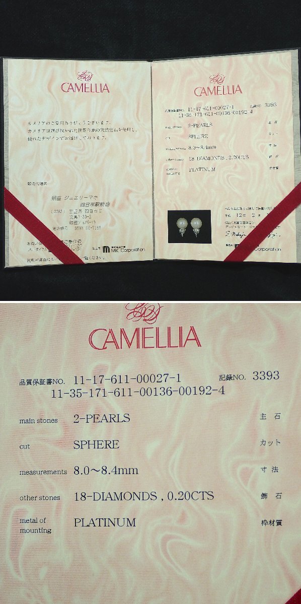 | 商品 | CAMELLIA Pt850 パール8mm ダイヤモンド0.20ct イヤリング 総重量6.6g |