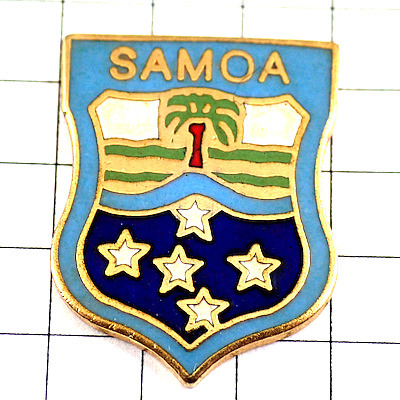 | "ピンバッジ・サモア南太平洋の国ヤシの木と星の国章ラグビーサモア代表 RUGBY SAMOA"の商品説明 | |