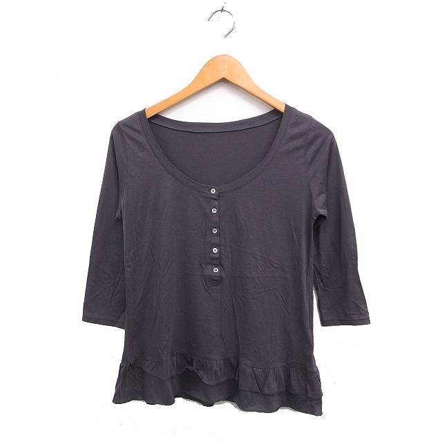 センソユニコ Senso unico 7分袖 カットソー オーバルネック 裾フリル 無地 コットン 綿 38 グレー 灰 /FT45 レディース