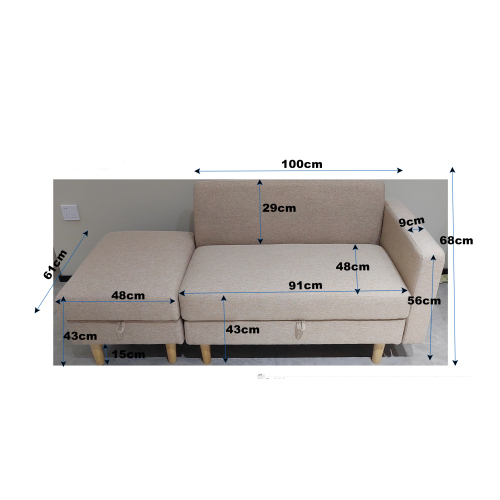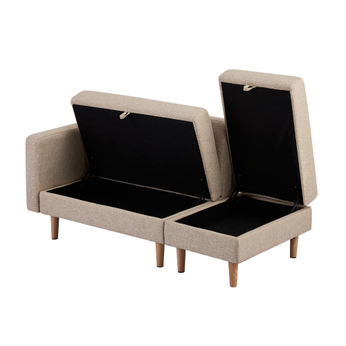 ソファ 2人掛け 収納付き オットマン付き ファブリック 肘掛け 木脚外し可能 ローソファ コンパクト ひとり暮らし カウチソファー