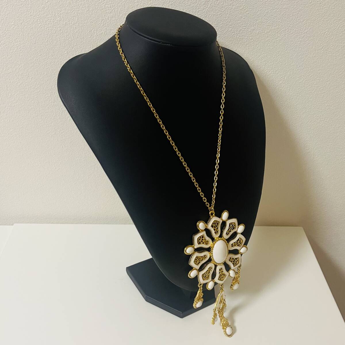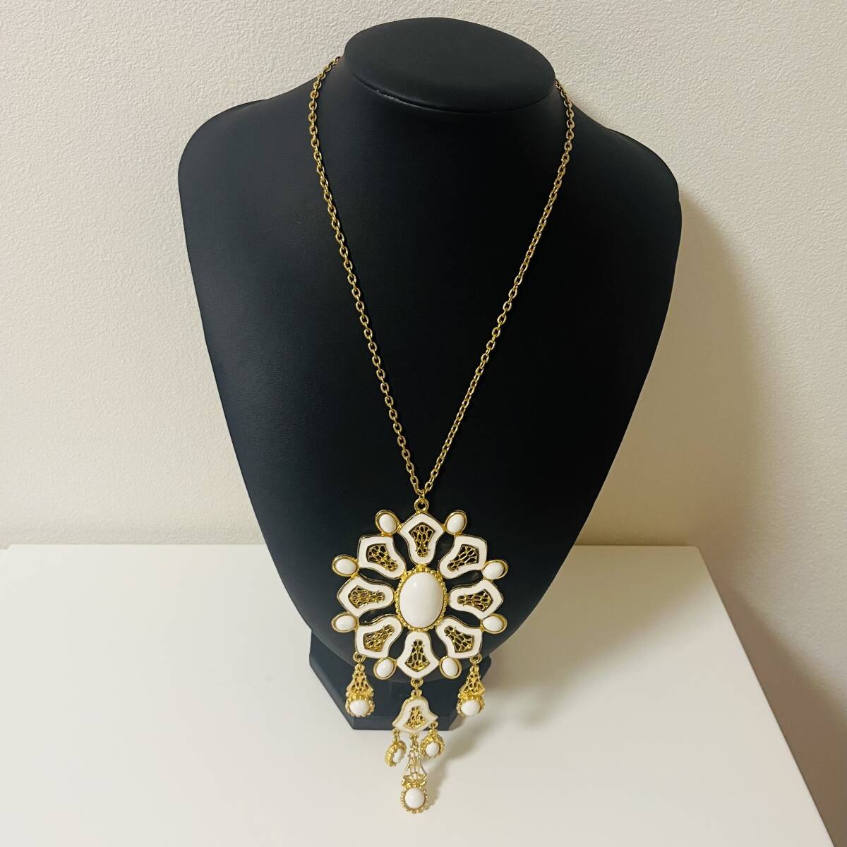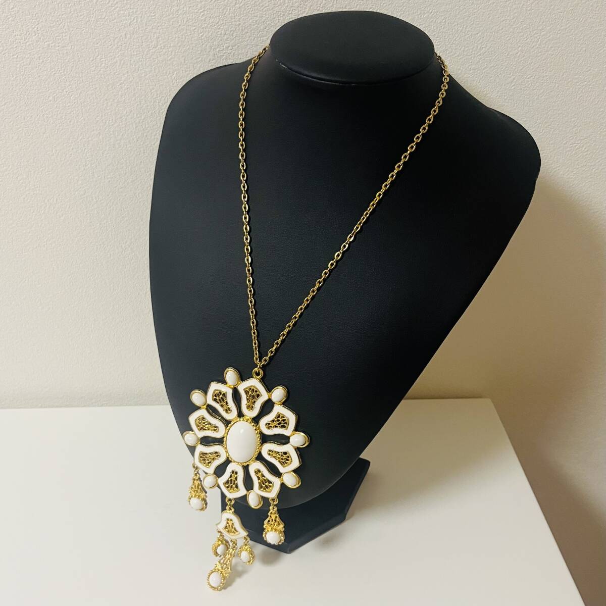 377 アンティーク ビンテージ コスチュームアクセサリー ネックレス 未使用保管品! ゴールドカラー ゴージャス 重厚感 揺れ感 白 海外製