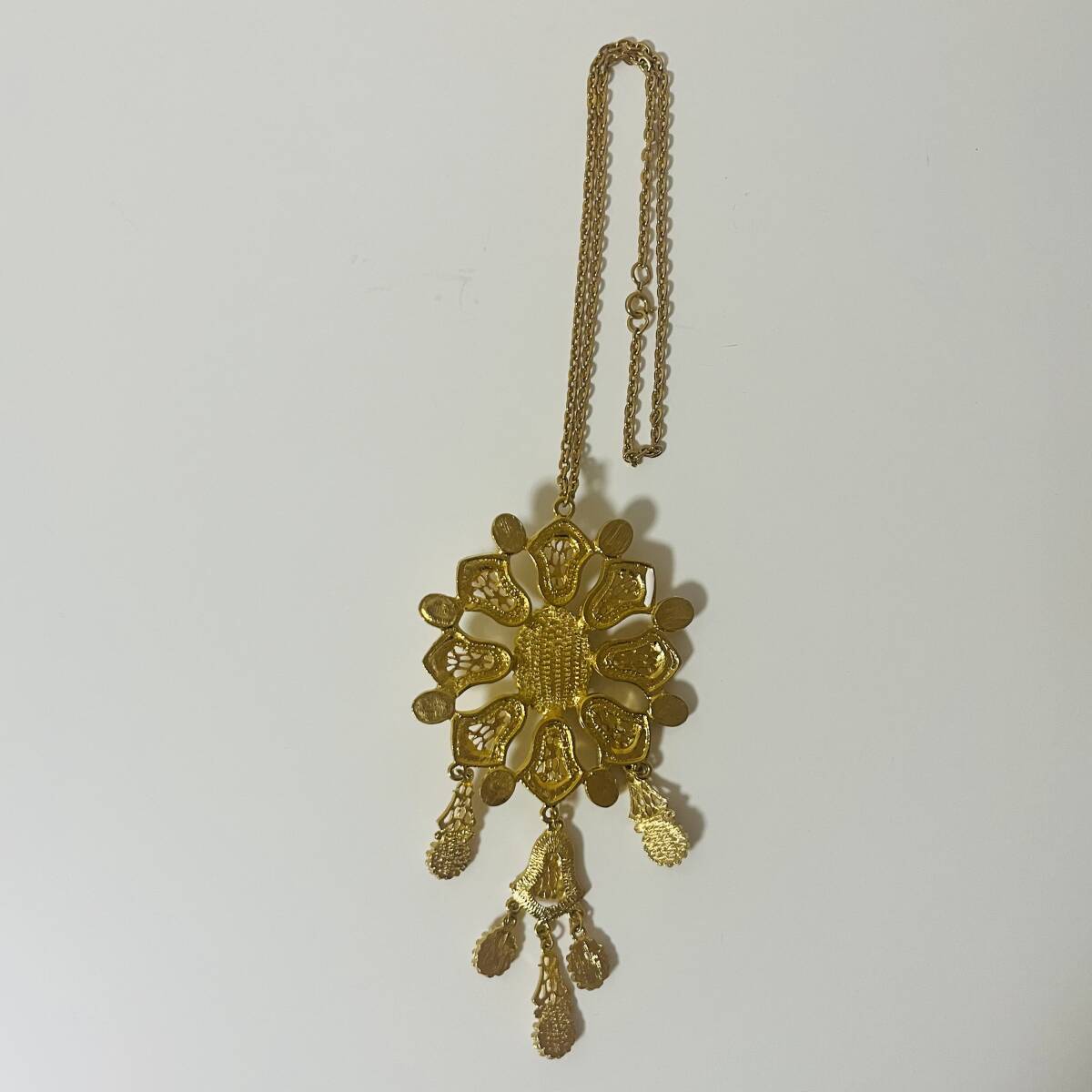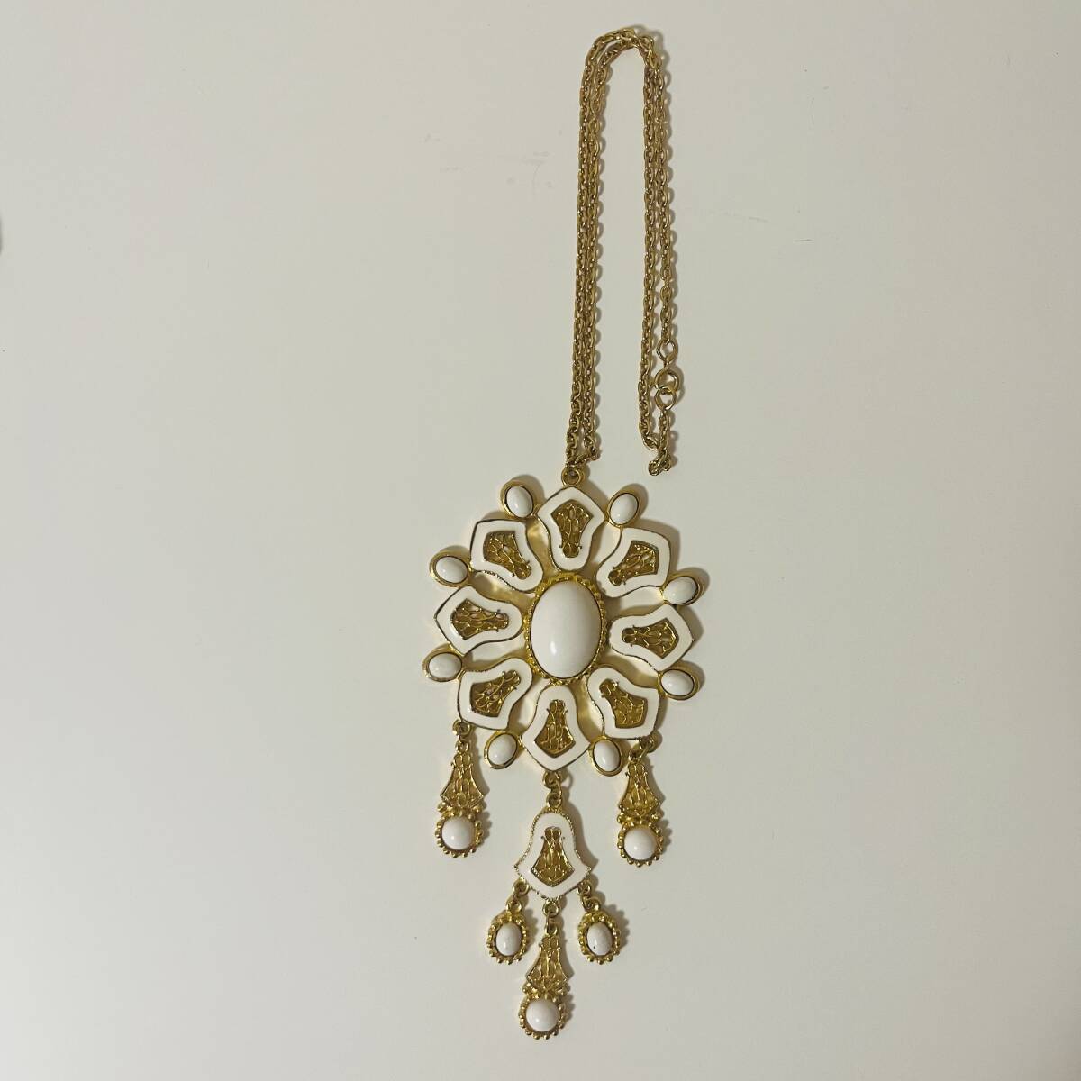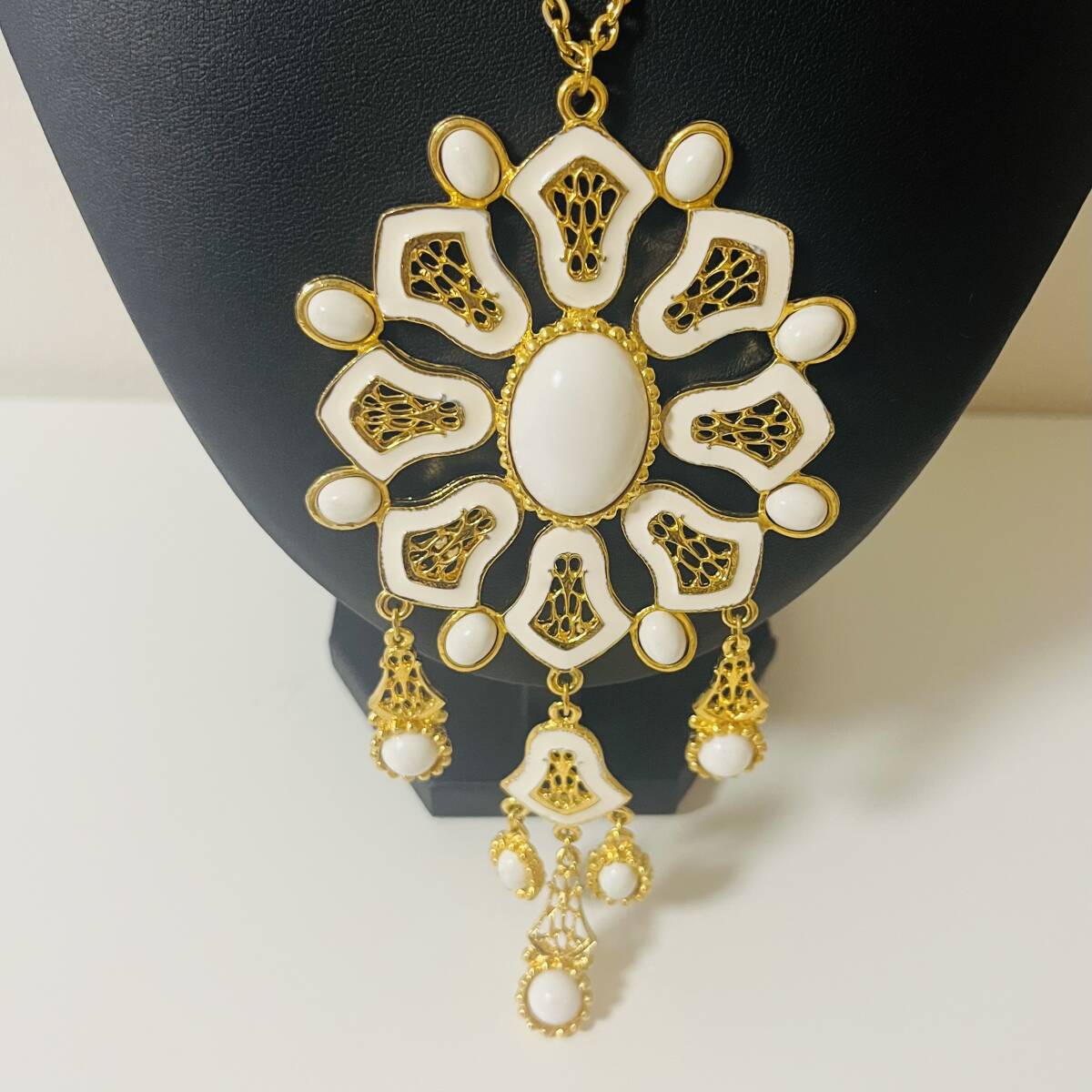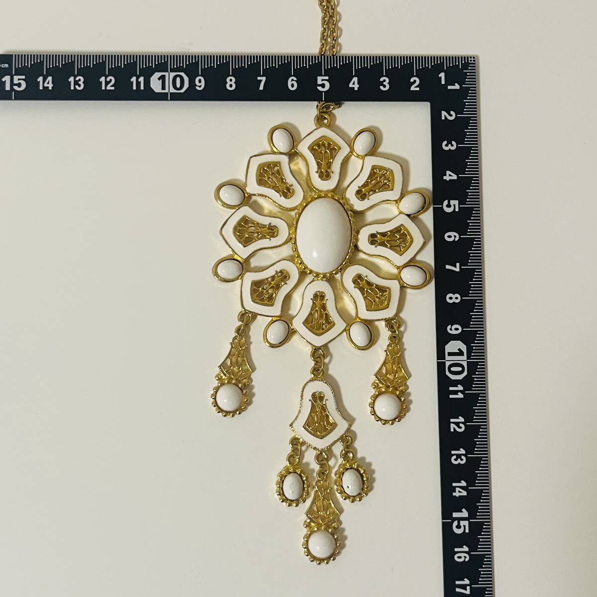 377 アンティーク ビンテージ コスチュームアクセサリー ネックレス 未使用保管品! ゴールドカラー ゴージャス 重厚感 揺れ感 白 海外製