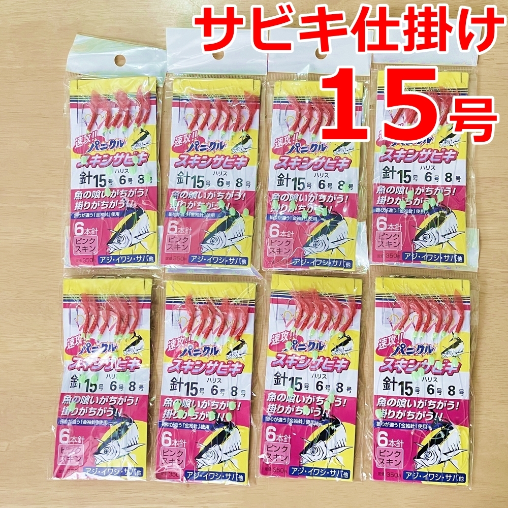 即決!【送料無料】15号 サビキ仕掛け 8セット アジ/イワシ/メバル/イサキ/サッパ★ピンク ジグ サビキ ルアー 自作☆疑似餌 五目釣り 船