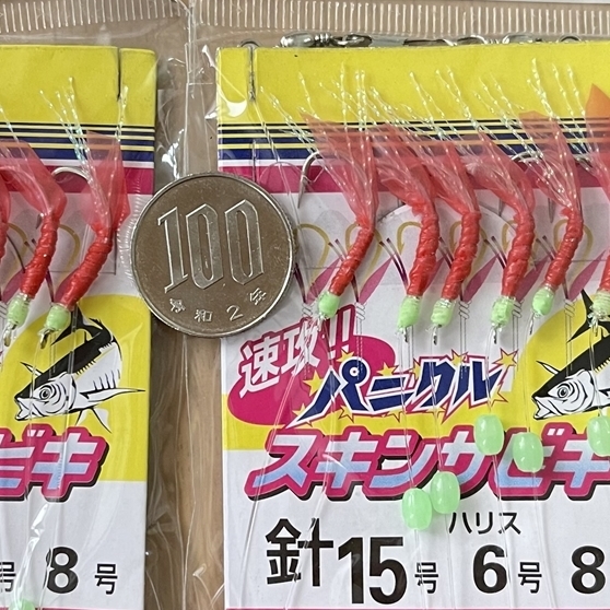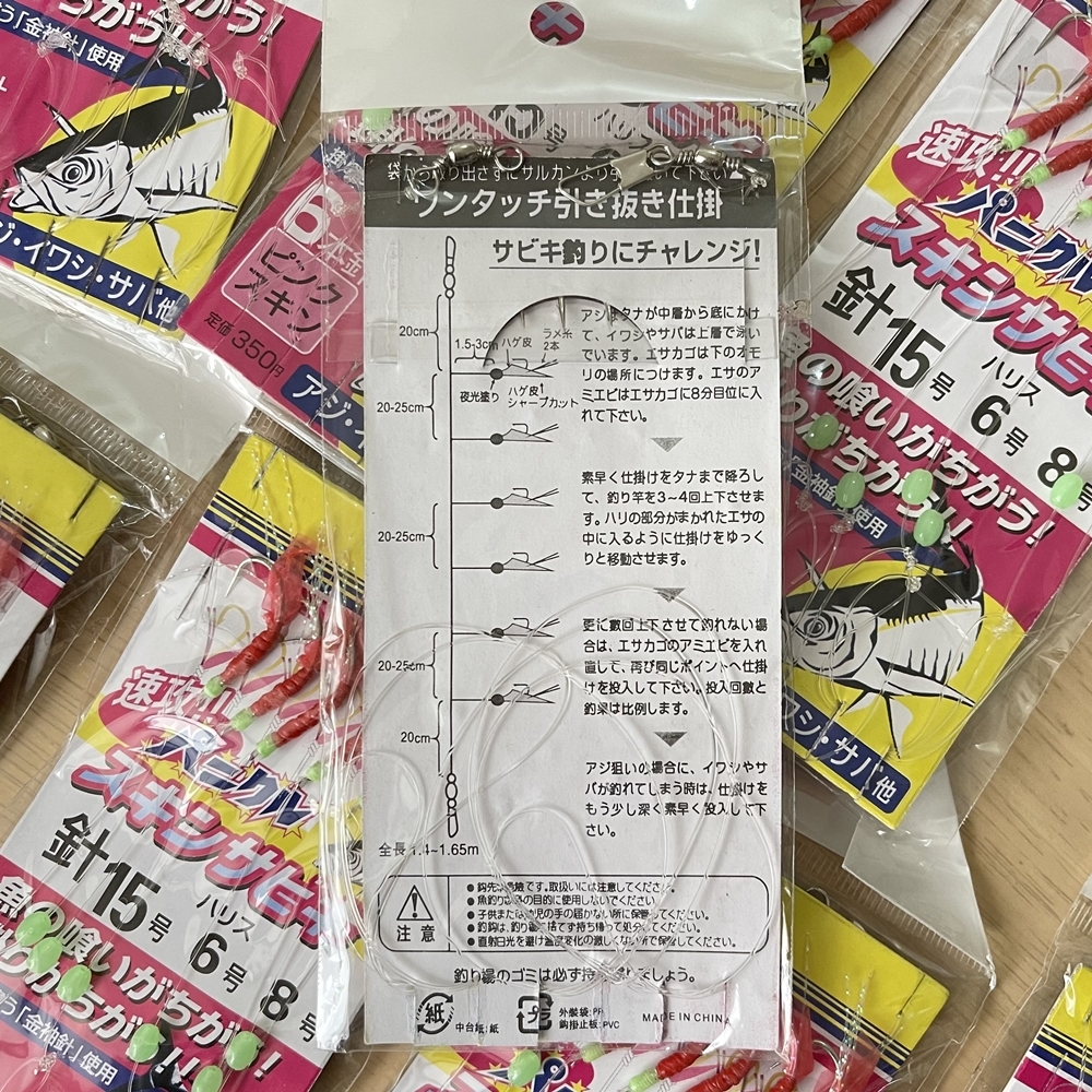 「ピンクスキン」と呼ばれるもので、コマセ(アミエビ)と色や形が似ているため、コマセを食べるのに夢中になった魚がうっかり食いついてきます。