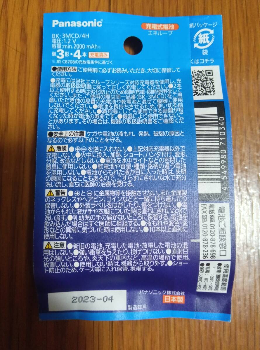未使用 未開封 リスク品 BK-3MCD/4H パナソニック eneloop スタンダードモデル 単3形 4本パック Panasonic eneloop BK3-MCD/4H