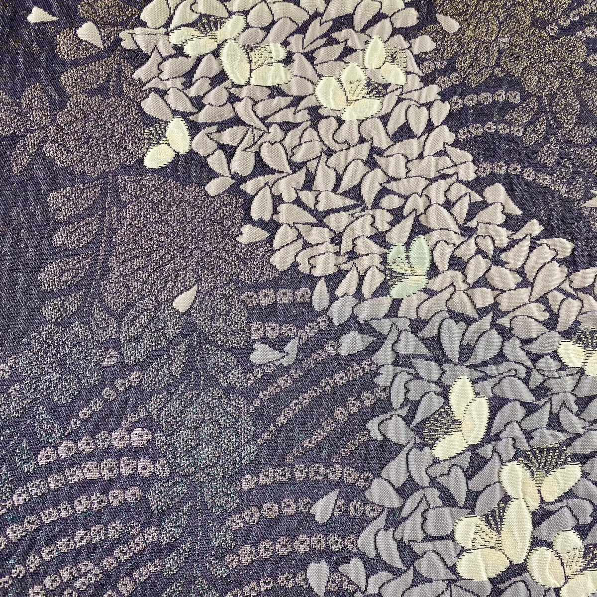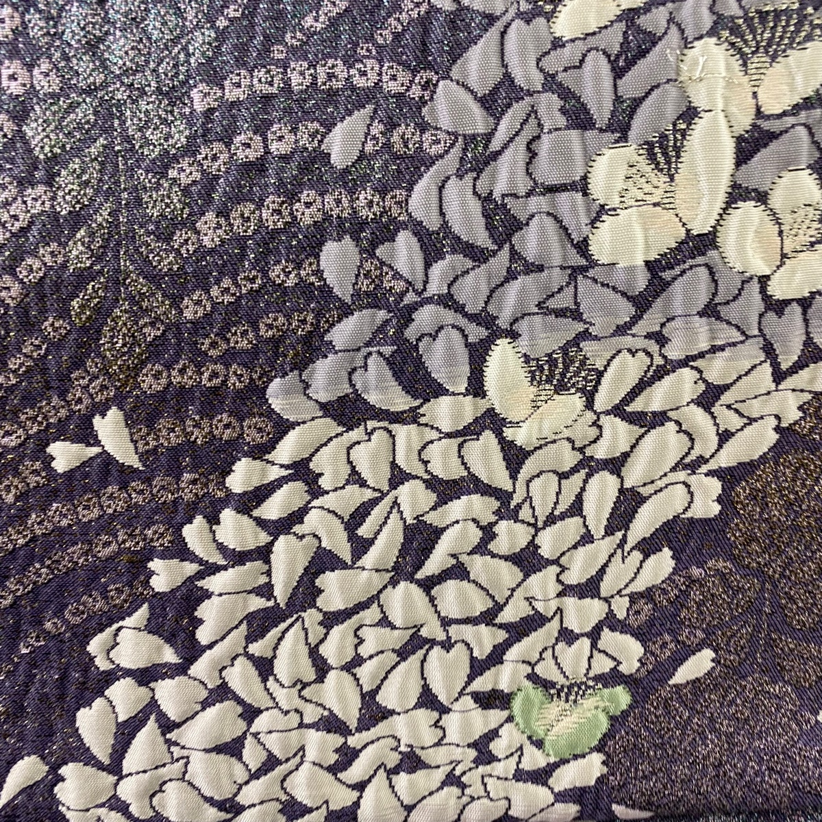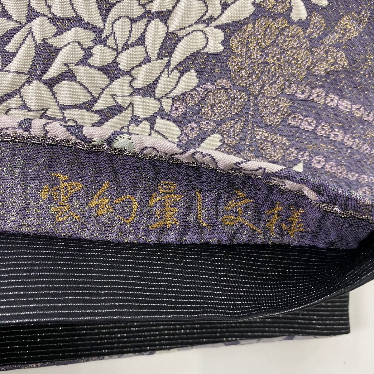 | 袋帯 美品 秀品 雲幻暈し文様 銀糸 箔 紫 六通 正絹 【中古】 |