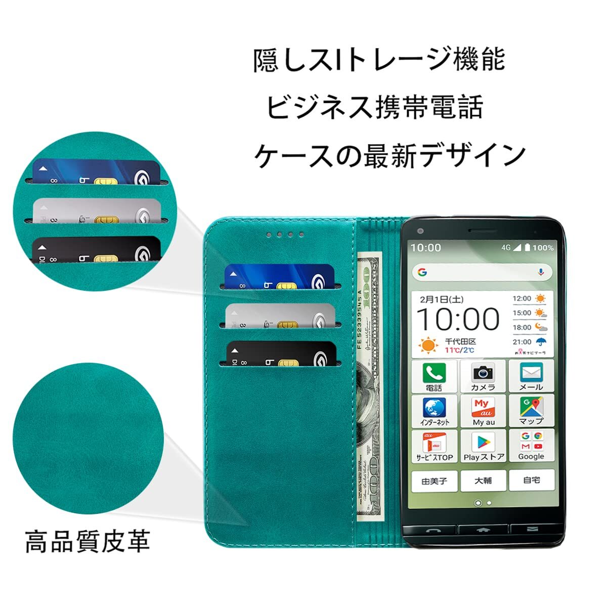 BASIO4 KYV47 ケース 手帳型 高質PUレザー BASIO4 KYV47 カバー KYOCERA BASIO 4 ケース 耐衝撃 内蔵マグネット開閉式 ベルトなし スマホケース おしゃれ カードポケット スタンド機能 便利 スプラット同梱 携帯ケース(ターコイズ)