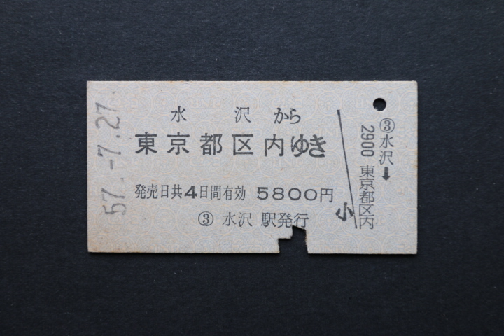 乗車券 水沢から 東京都区内ゆき 5800円