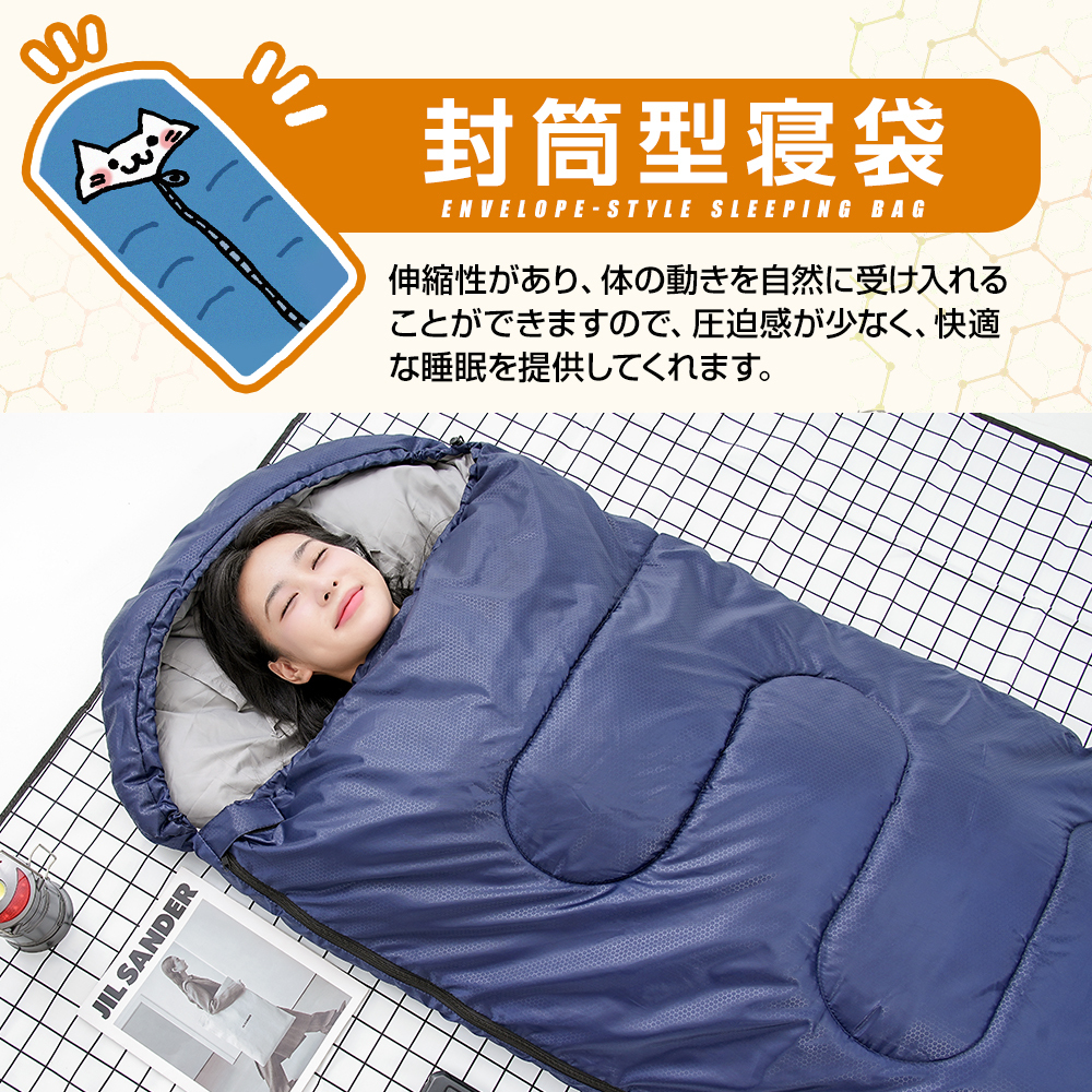 寝袋 シュラフ キャンプ用品 車中泊 コンパクト 旅行 夏用 冬用 軽量 洗える 防災 1KG ブラック