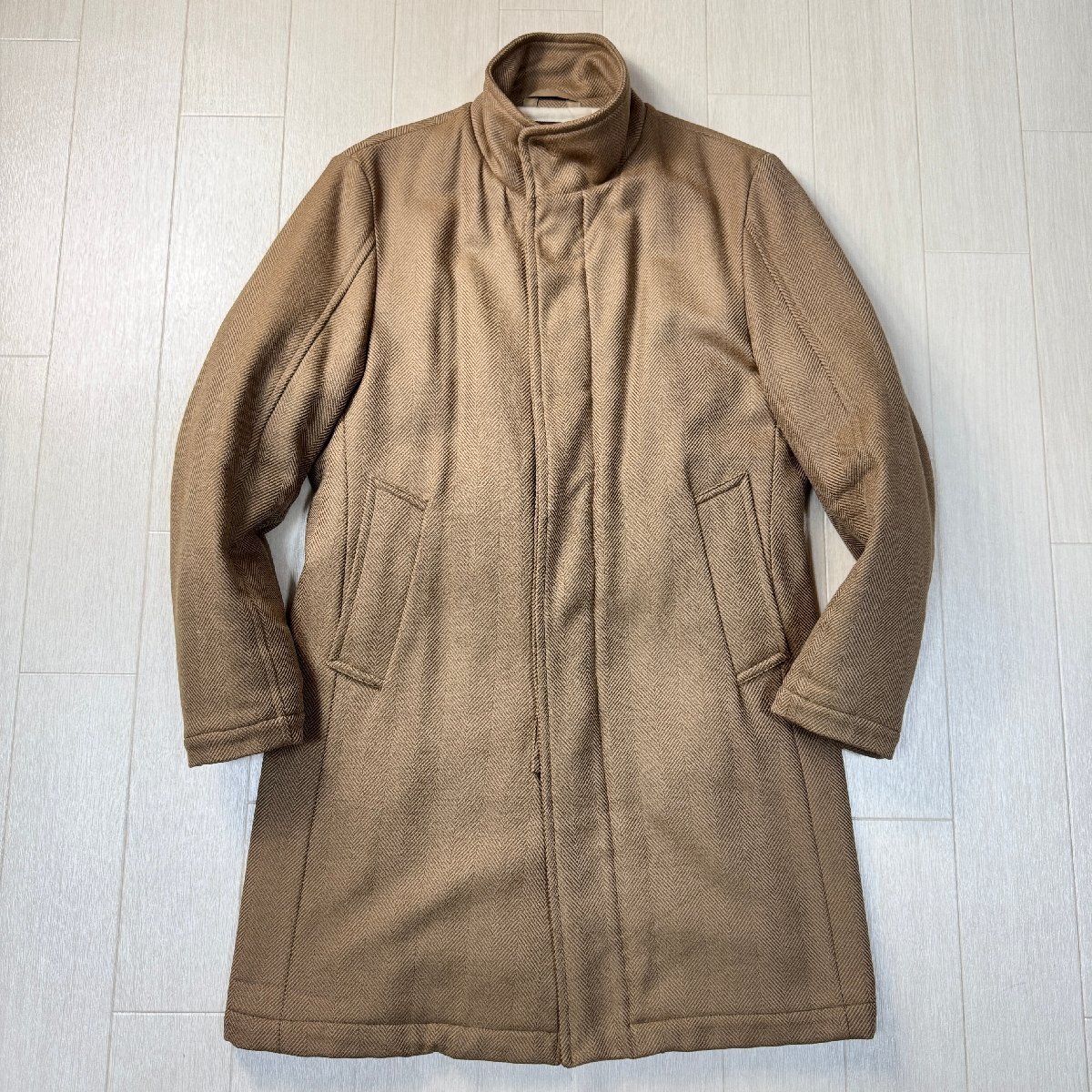 美品/2 M-L相当★モンクレール/MONCLER ヘリンボーン織 ウール ダウンコート ジャケット アウター スタンドカラー 極暖 メンズ ベージュ