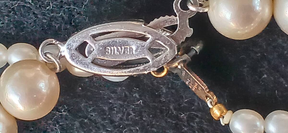 !秀品!ネックレス「真珠の首飾り」2連・金具シルバー・保証!(詳細不明)