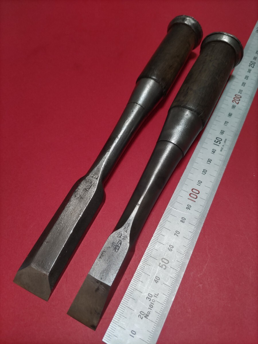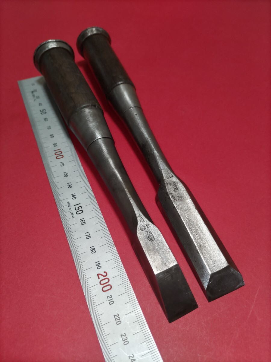 鑿■ノミ■のみ■N-414■弘昭■伸光■叩鑿■2本セット■大工道具■古道具■DIY■良く切れる■即使用可能■刃幅18㎜24㎜■全長232㎜244㎜■
