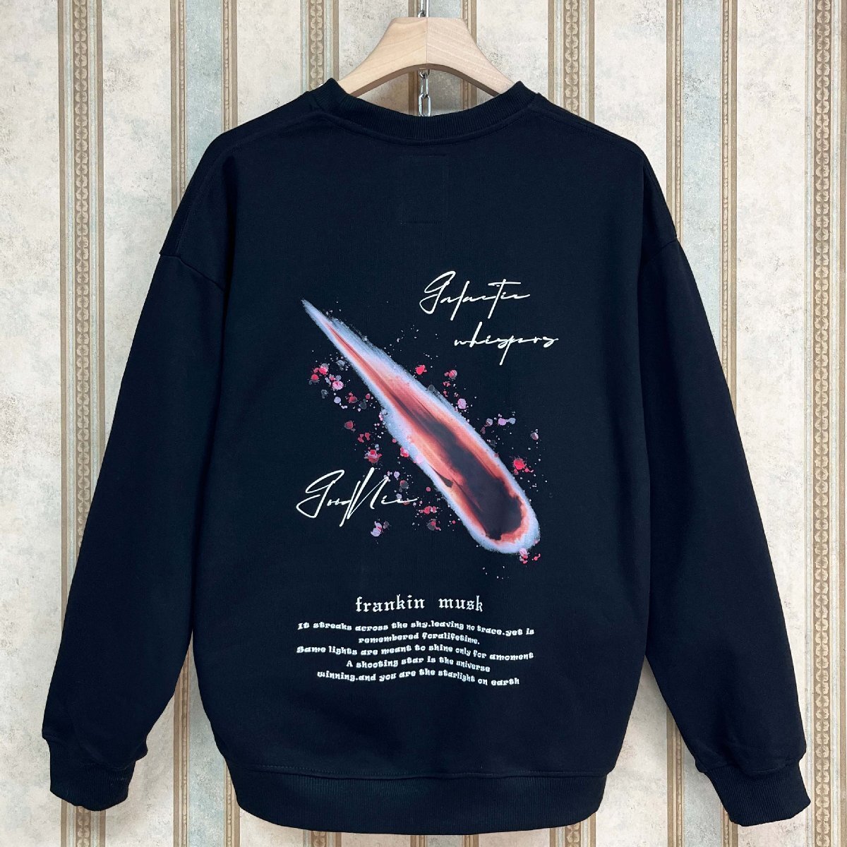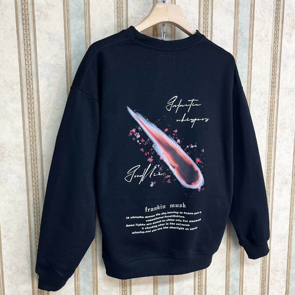 定番のデザインは、カジュアルでありながら品の良さを漂わせ、落ち着いた印象を与えてくれ、大人の魅力を惹き出せます。首元はシンプルなクルーネックデザインを採用しており、首回りに余裕があるため、締め付け感がなく快適です。バックには特別な流星と英字柄が目を引き、オシャレ感を溢れています。