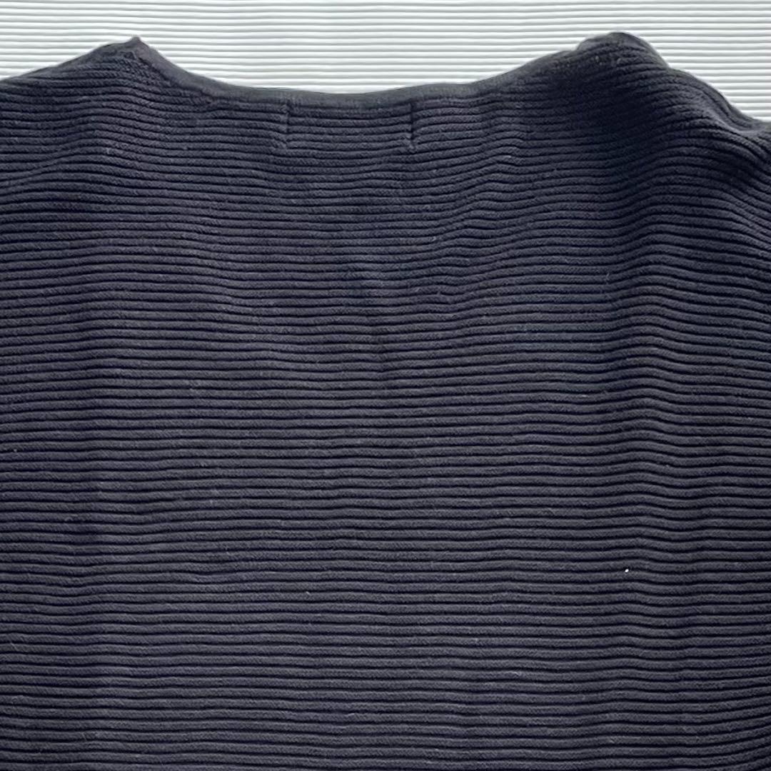 リブ編みのVネックデザインで、カジュアルなスタイルに最適なブラックの半袖ニットです。