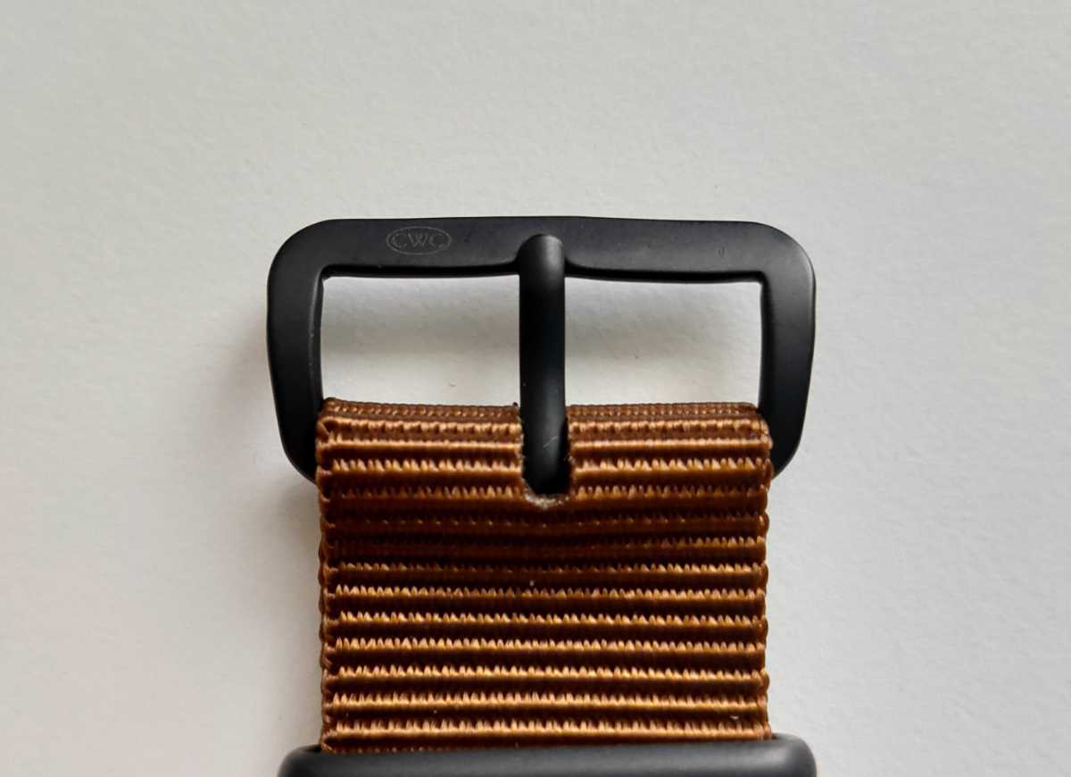 コヨーテ生地xつや消しPVDバックルの組み合わせで、ラグ幅「20mm」の時計に対応します。