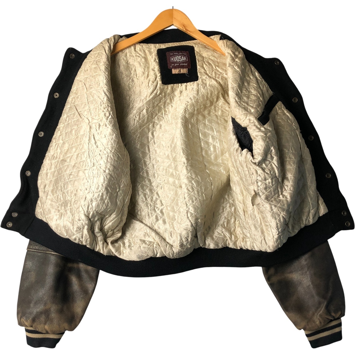 | 商品名: 古着 KUDSAK 中綿入り 袖革ウールボタンスタジャン バーシティジャケット メンズXL相当 ヴィンテージ /evb031282 【中古】 【250922】 【NH-2508】 ブランド: KUDSAK 特徴: スナップボタン / 短丈 ショート丈 / 中綿入り / ラインリブ / キルティングライナー モデル/形状: 袖革ウールボタンスタジャン バーシティジャケット 素材: 不明: 色: ブラック系 黒色 / ベージュ系 / ネイビー系 紺色 柄: パッチ 生産国: 不明 年代: - カテゴリ: メンズ ジャケット スタジャン 商品番号: evb031282 コメント:品質表示タグ欠損の為、素材が不明でございます。恐らく本体はウール混、袖部分は本革レザーと思われます。 | |