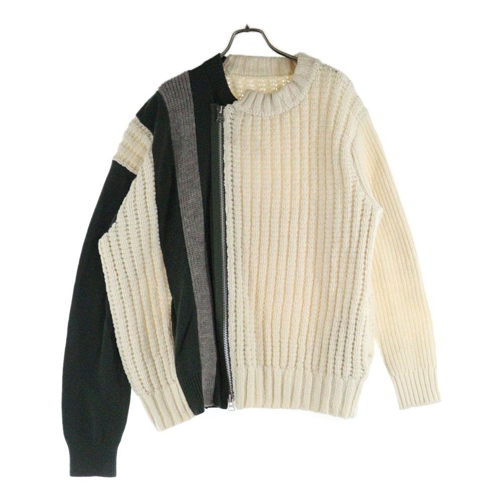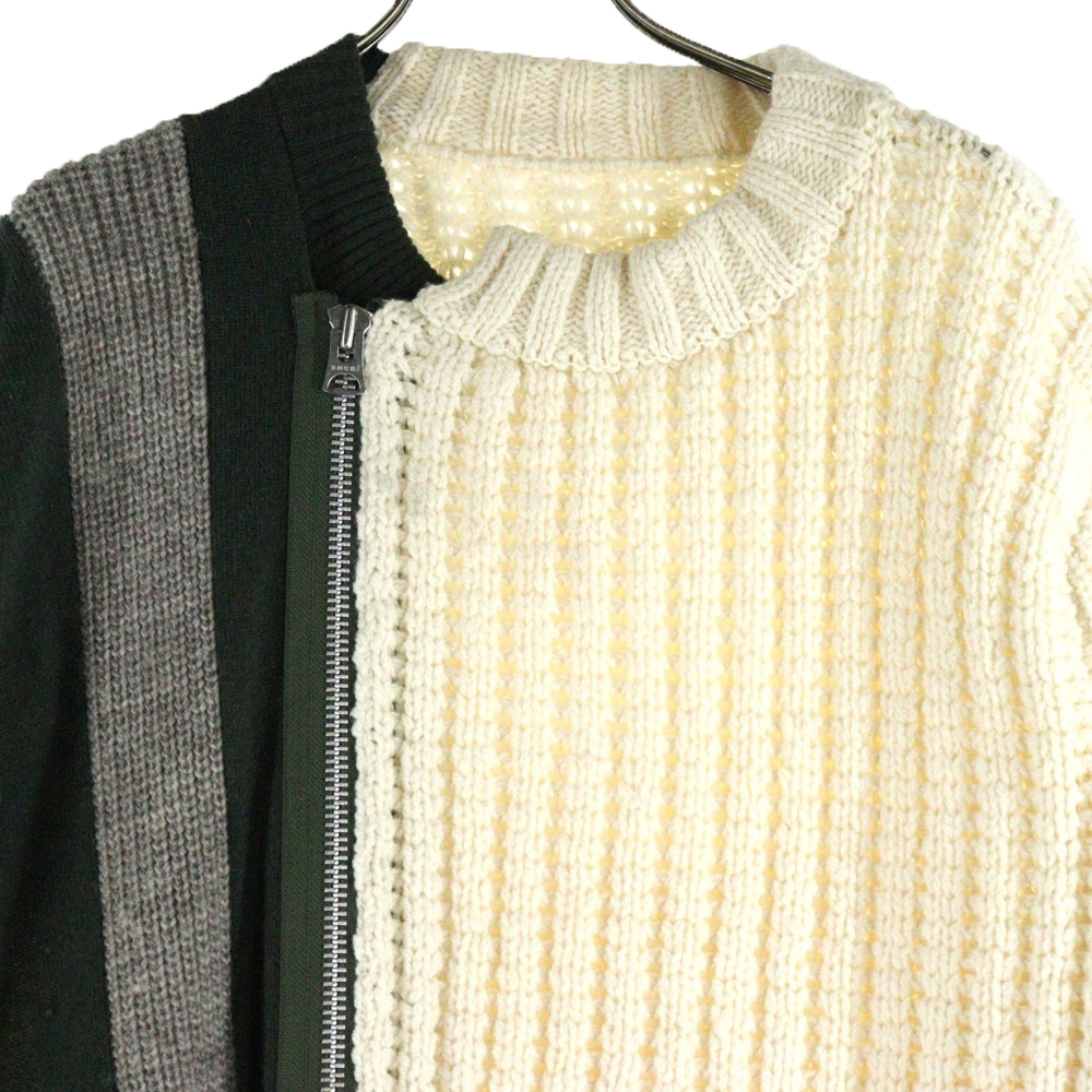 Sacai サカイ Wool Knit Blouson フロントジップ付き ウールニットブルゾン ホワイト/グレー 20-02406M