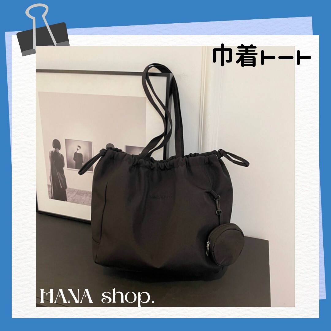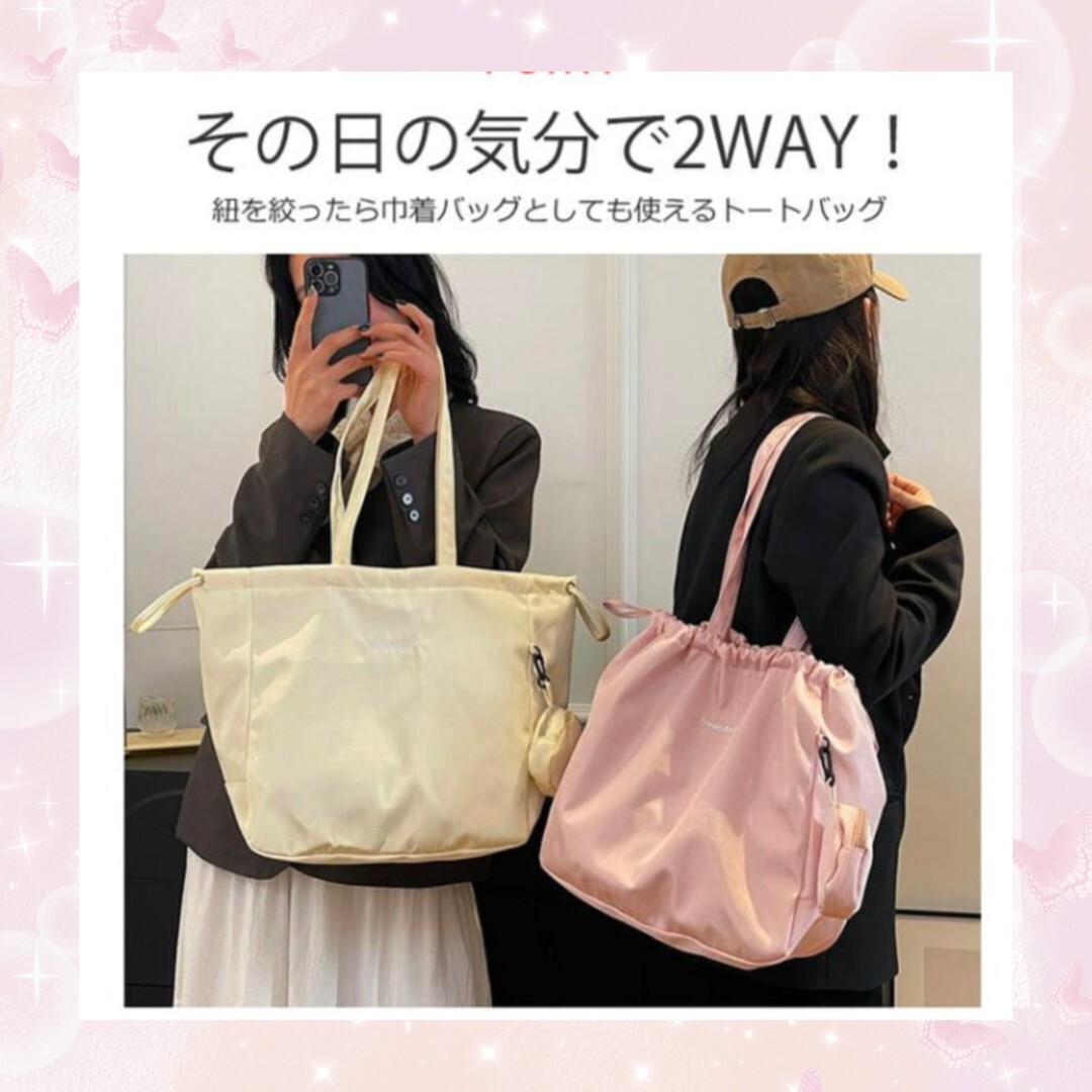 ミニポーチ付き 巾着 ナイロン トートバッグ A4サイズ サブバッグ ママバッグ マザーズバッグ 推し活バッグ 鞄 カバン かばん 肩掛けバッグ 大容量 軽量 軽い レディース 韓国 Y2K ファッション