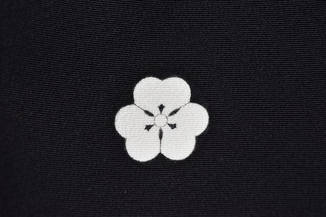 縮緬地に片喰の五つ紋の比翼付きのお着物です。