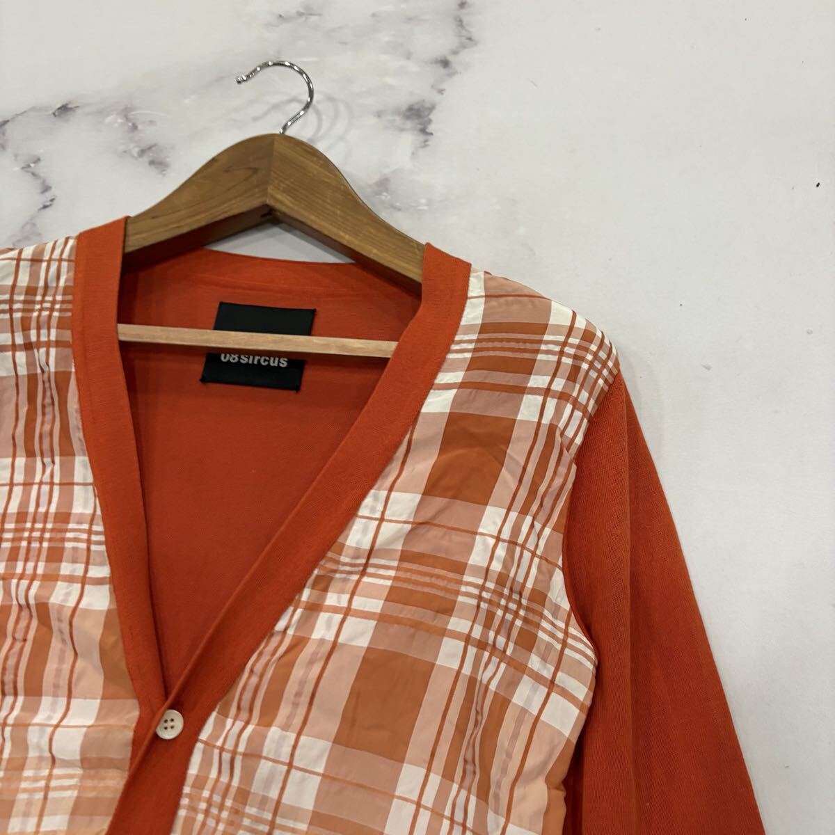 AH ■ 日本製 '洗練されたデザイン' 08sircus ゼロエイトサーカス 長袖 COTTON チェック柄 ニット 切り替え カーディガン 1/46 トップス