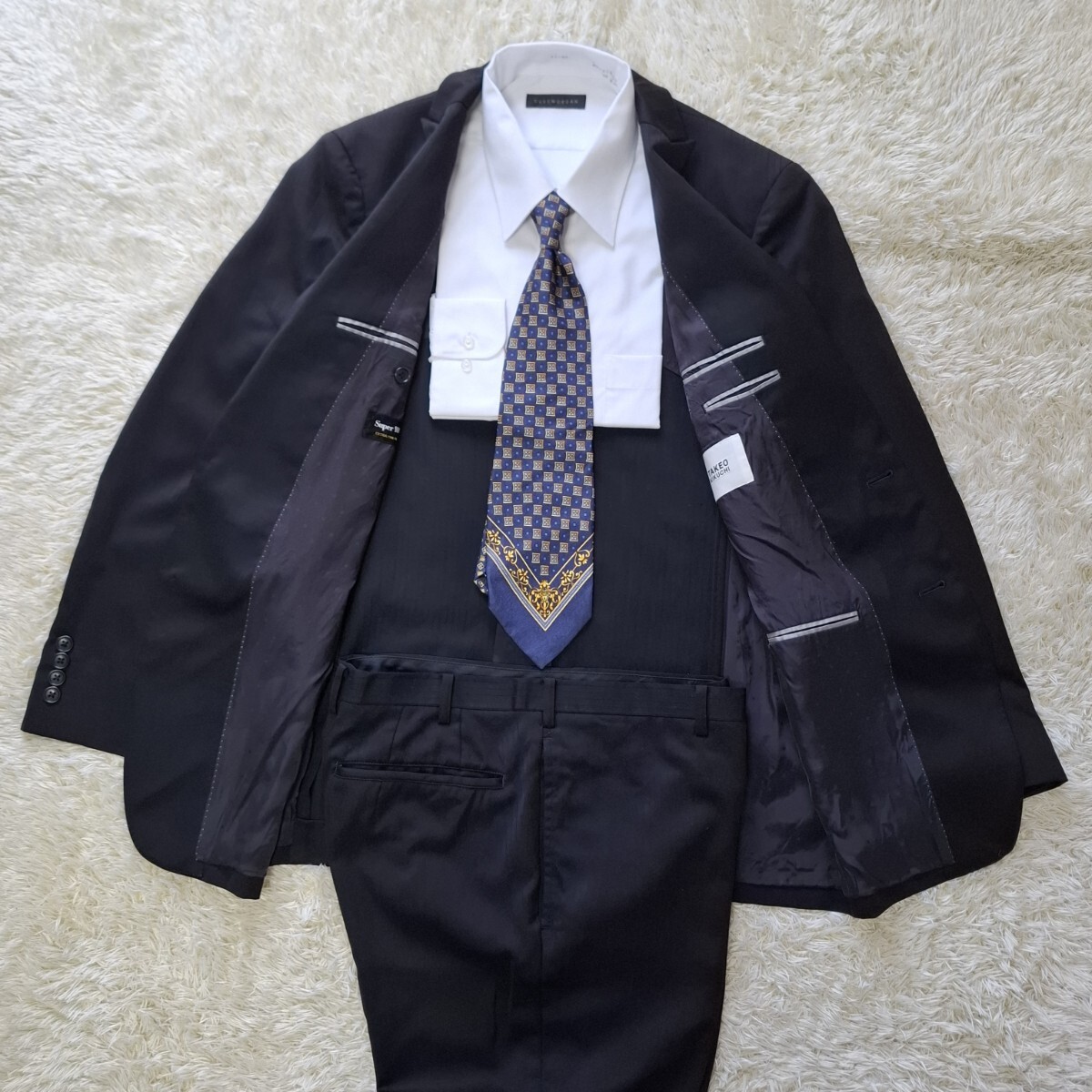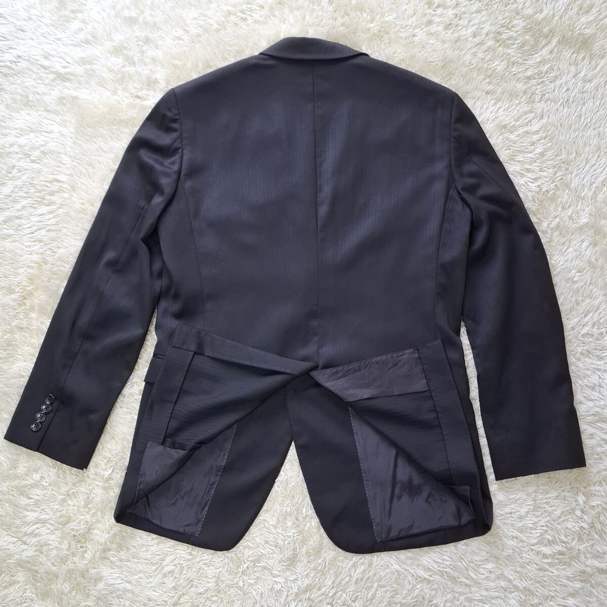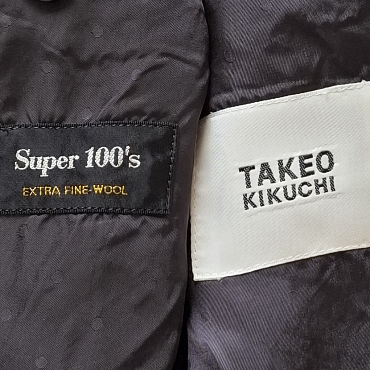 タケオ キクチ TAKEO KIKUCHI スーツ セットアップ テーラードジャケット ストライプ ブラック 黒 XL 毛 SUPER100s 2B 背抜き 洗濯済