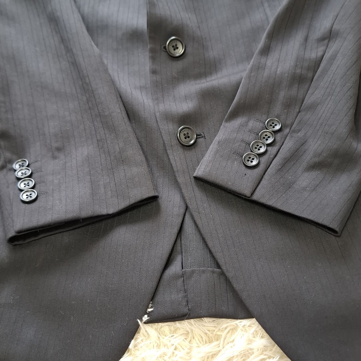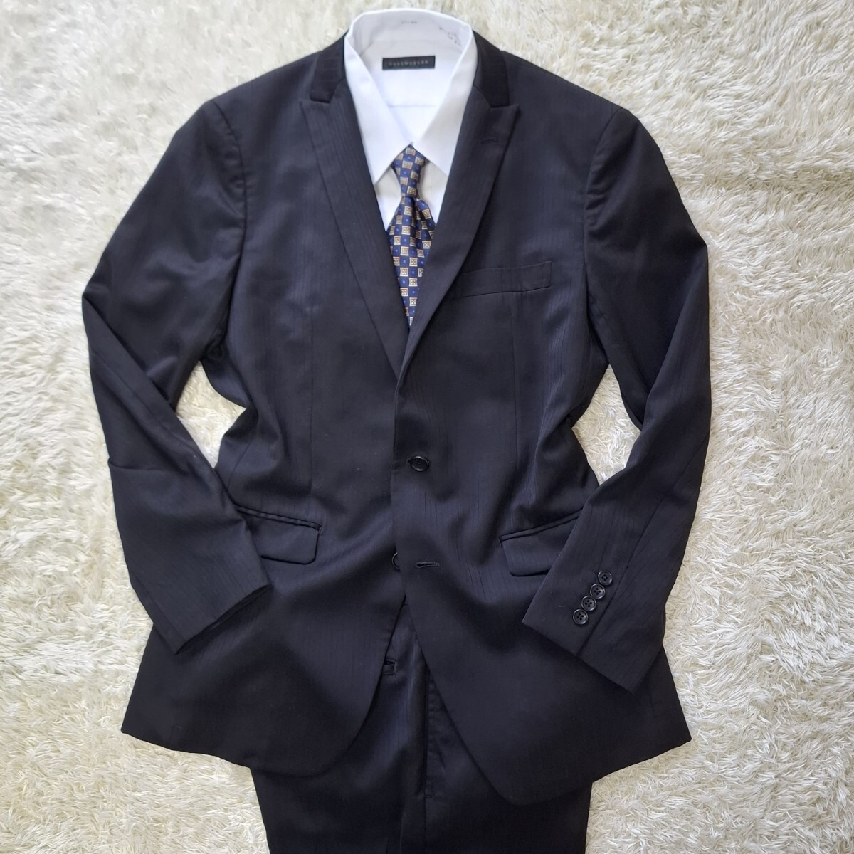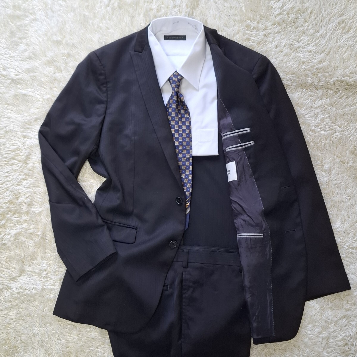 タケオ キクチ TAKEO KIKUCHI スーツ セットアップ テーラードジャケット ストライプ ブラック 黒 XL 毛 SUPER100s 2B 背抜き 洗濯済
