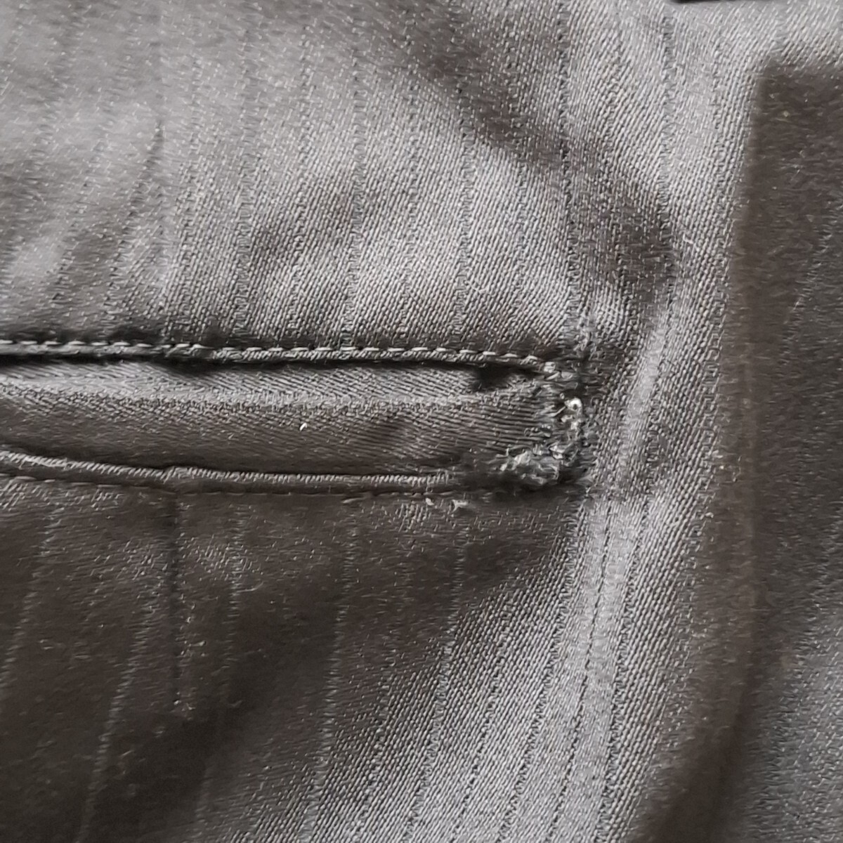 パンツの左バックポケットの一部に補修痕あります。ホツレの簡易的な補修がされています。