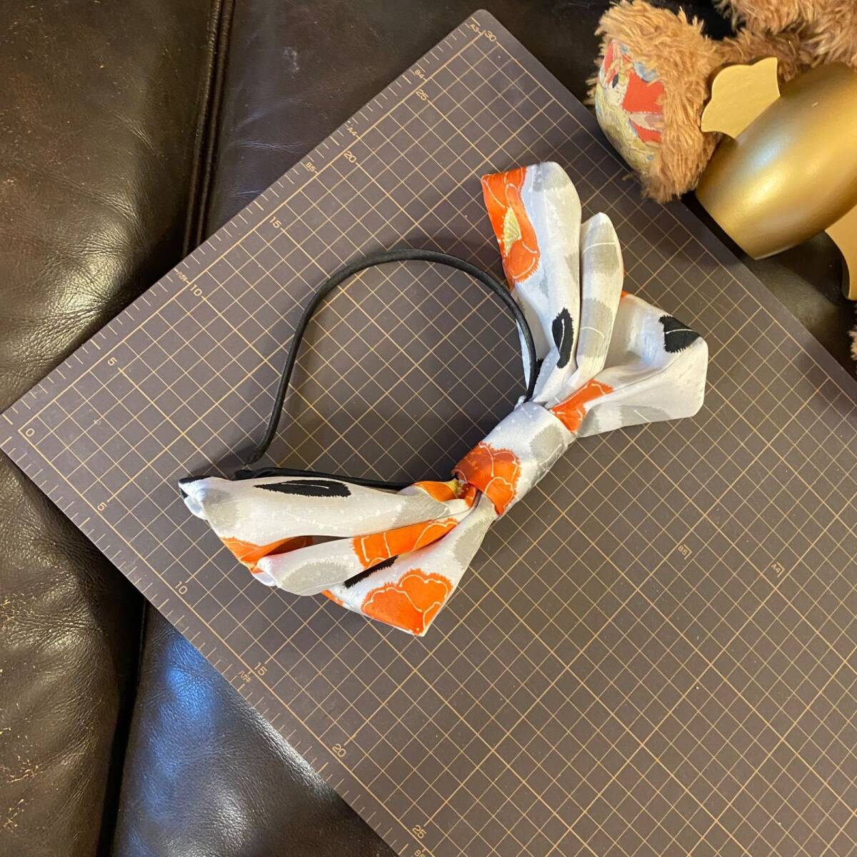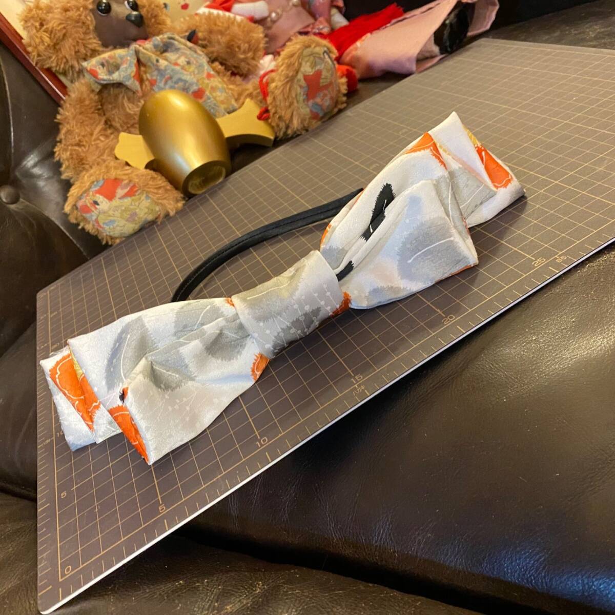 やわらかなオフホワイト地に、細かな斜め地紋がほのかにきらめく着物地をコラージュ。