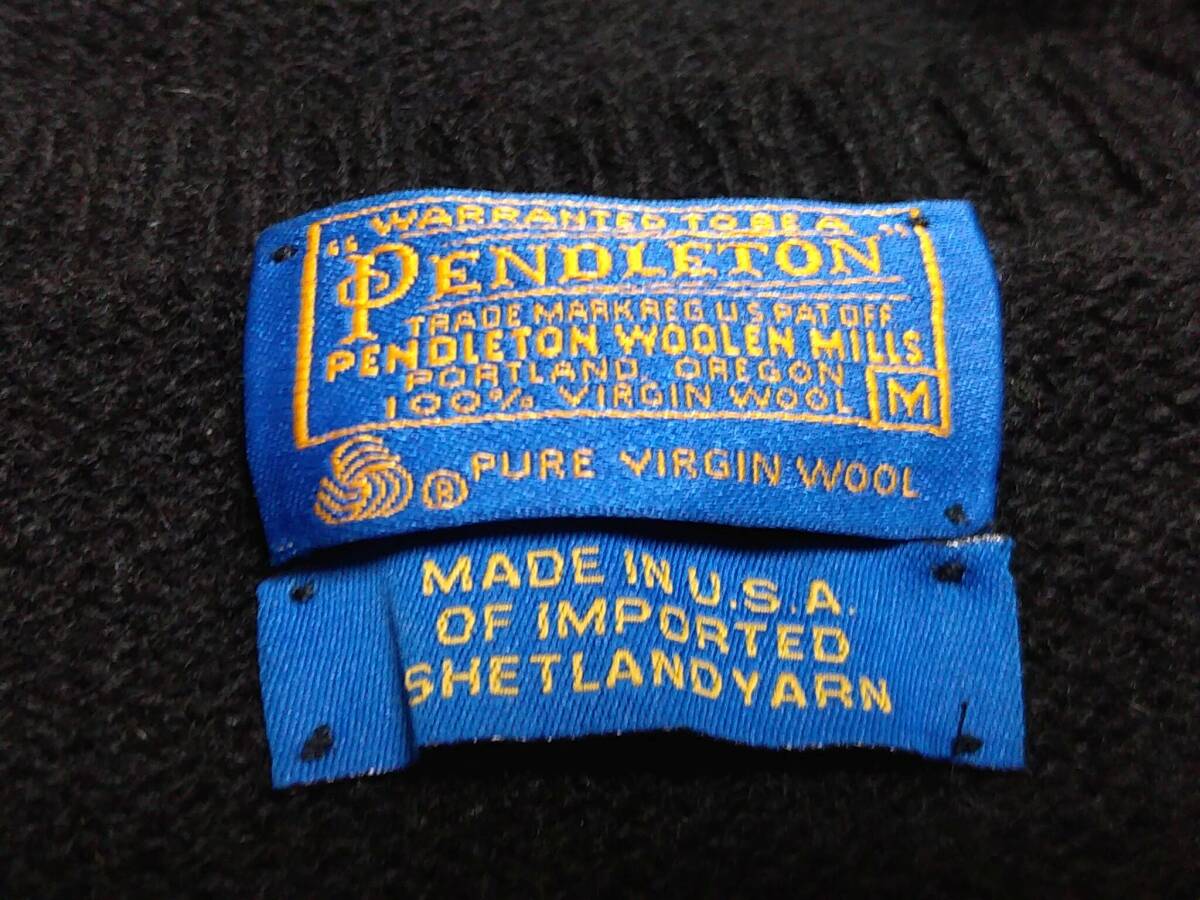 USA製 PENDLETON ペンドルトン クールネックウールニット T165-170相当 ブラック系 旧タグ シェットランドウール100% pure virgin wool