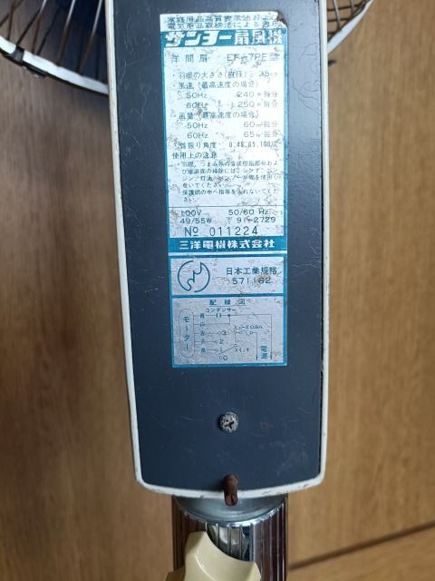 昭和家電 SANYO サンヨー 卓上扇風機 EF-7PF型 羽根サイズ 35cm 動作品 訳あり/洋間扇 ノッポ レトロ ポップ 三洋 | ||||