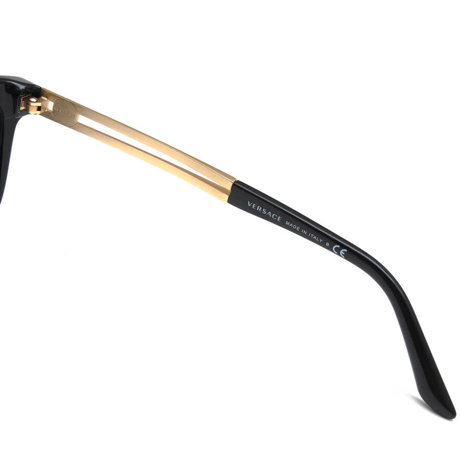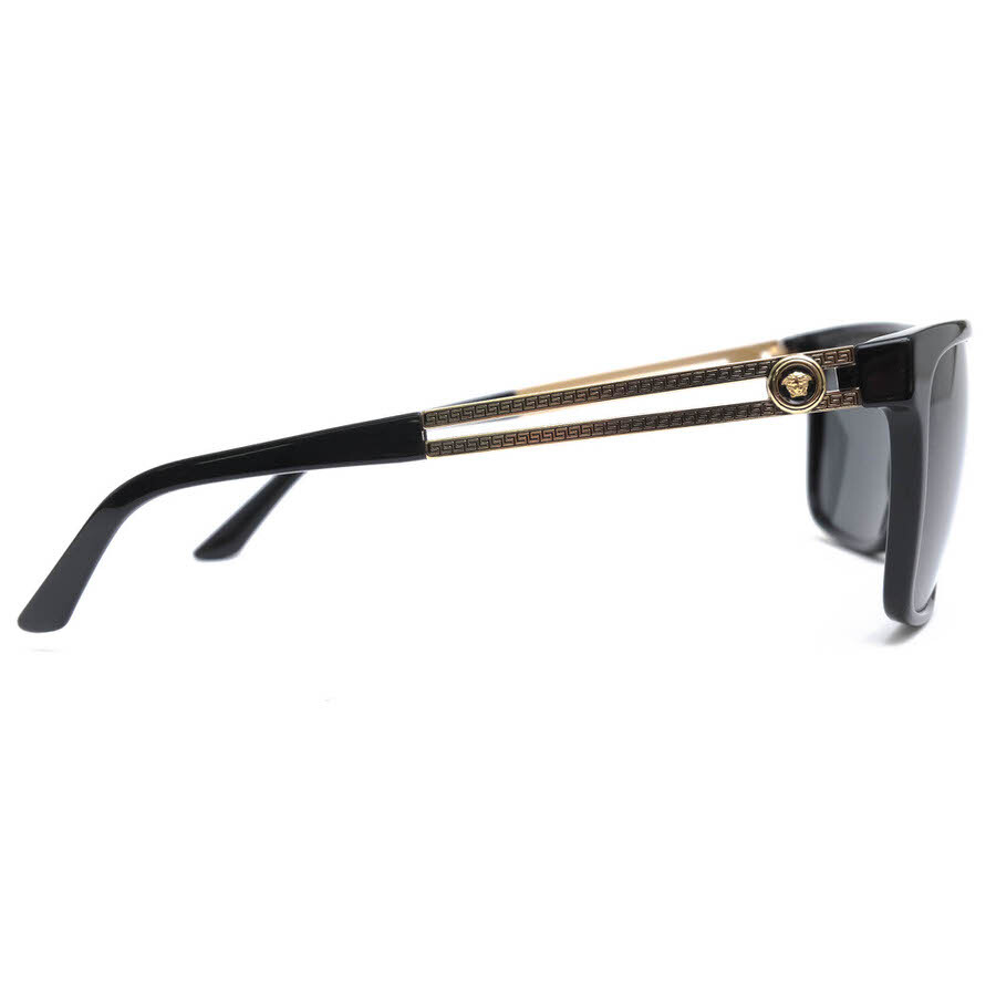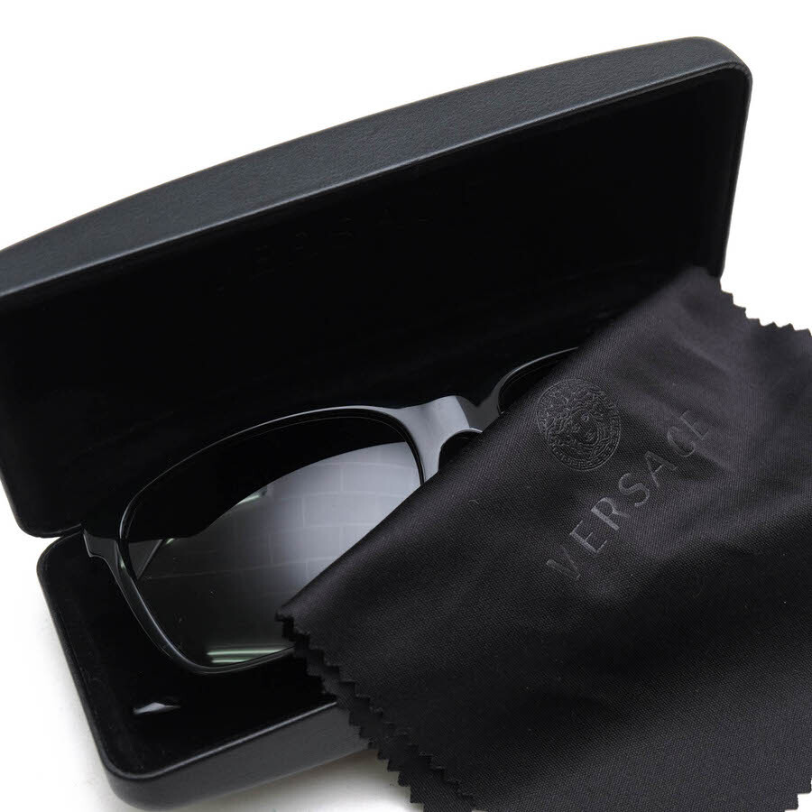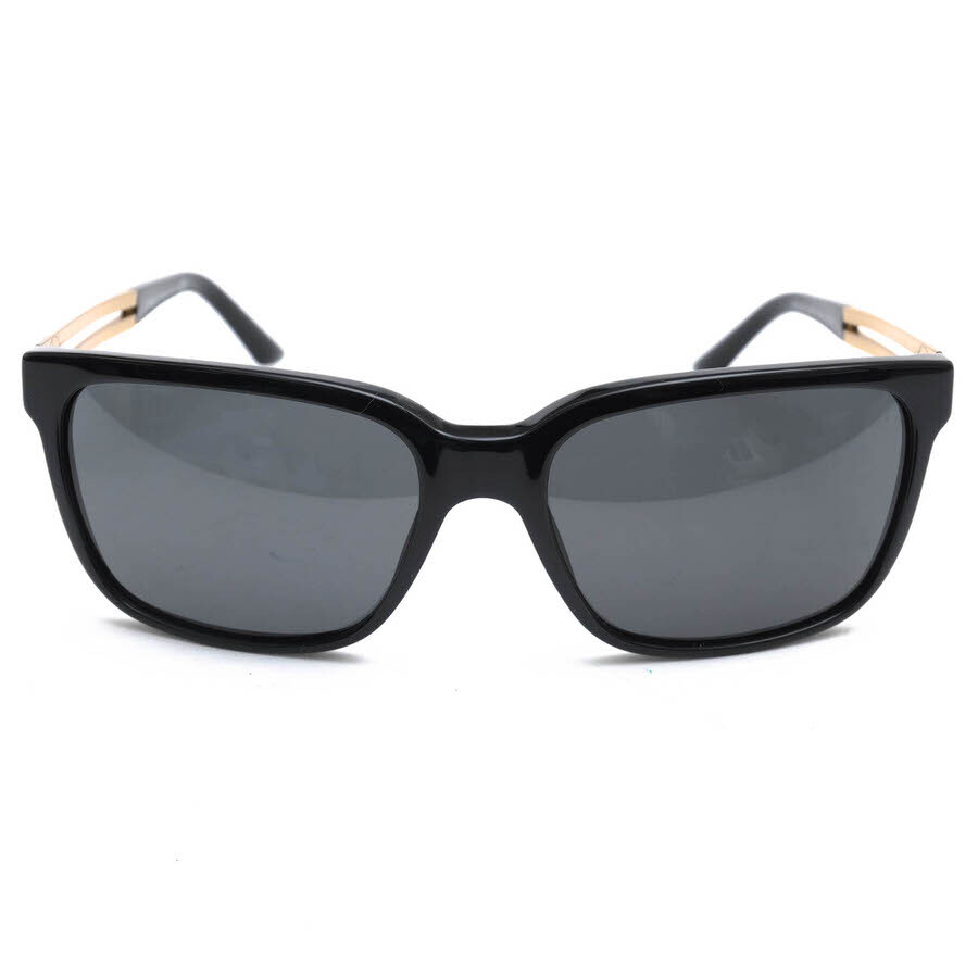 グレカとメドゥーサヘッドモチーフをメタル製テンプルにデザインしたモデル。フレームはブラックのアセテートで、レンズはブラックです。イタリア製で、高品質な素材で作られています。レクタングラースタイルのサングラスは、どんな顔型にも合わせやすく、クールでスタイリッシュな印象を与えます。 |