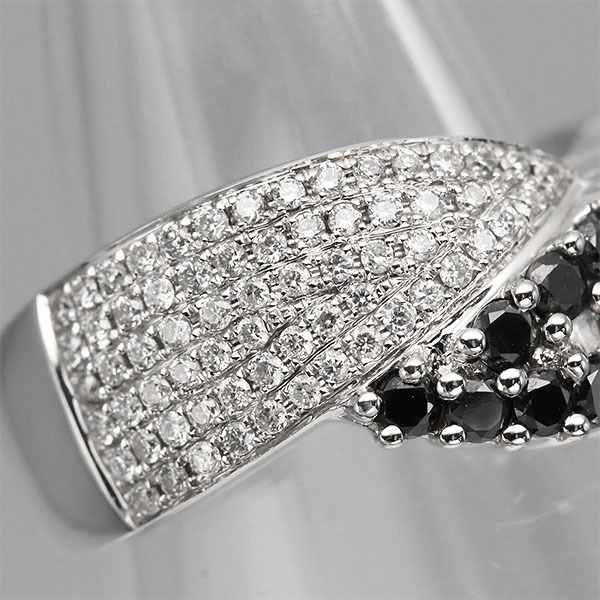 新品仕上げ済み K18WG ブラックダイヤ/ダイヤモンド リング 11.5号 D0.75ct/0.30ct ゴールド レディース 女性 誕生日 プレゼント