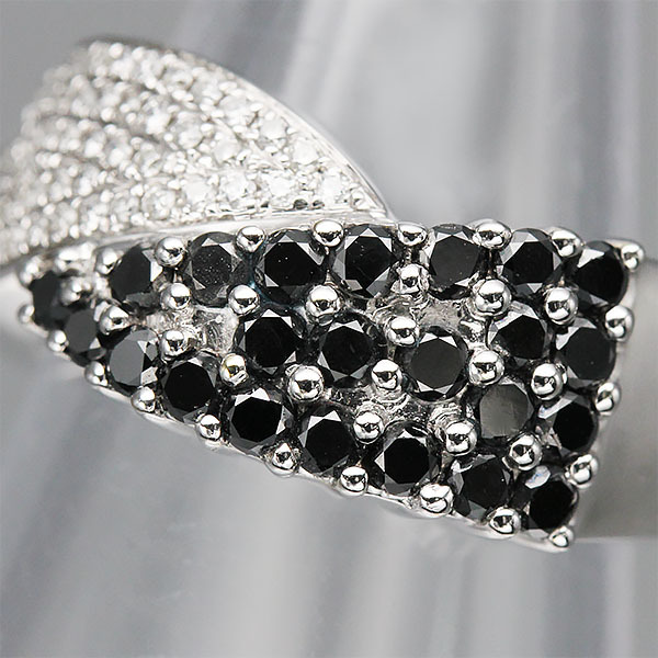 クールなブラックダイヤと、きらめくダイヤモンドが絶妙にマッチしたリング。