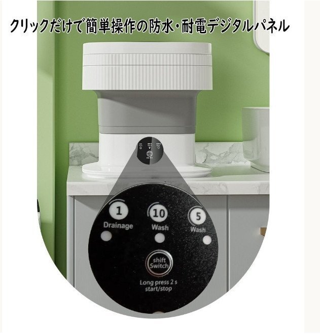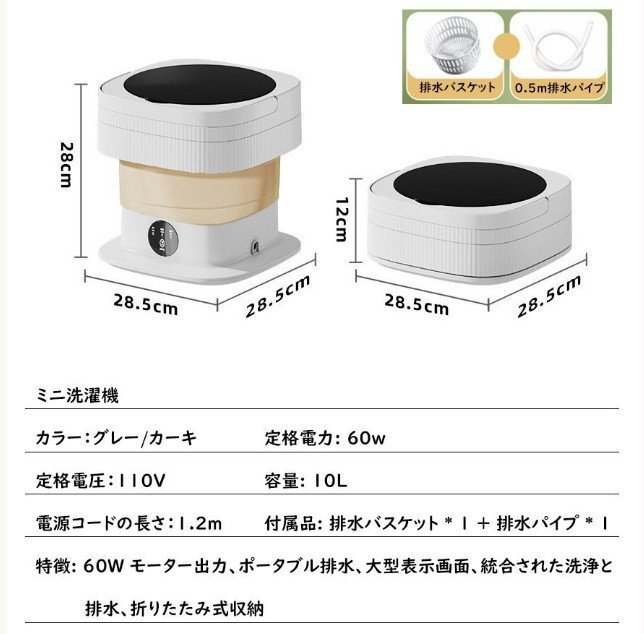 10L小型洗濯機 折りたたみ式 バケツ型洗濯機 室内 コンパクト ミニ 60W 脱水 ベビー用品 介護用品 高機能 収納 靴下 下着 カーキ(A60)