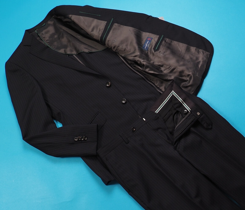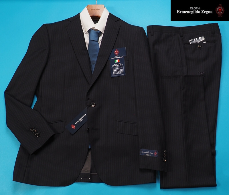 新品17.3万円 大手百貨店扱い 春夏『Ermenegildo Zegna ゼニア TROPICAL 伊製生地』ウール100% ストライプ スーツA7黒(A) 1507671