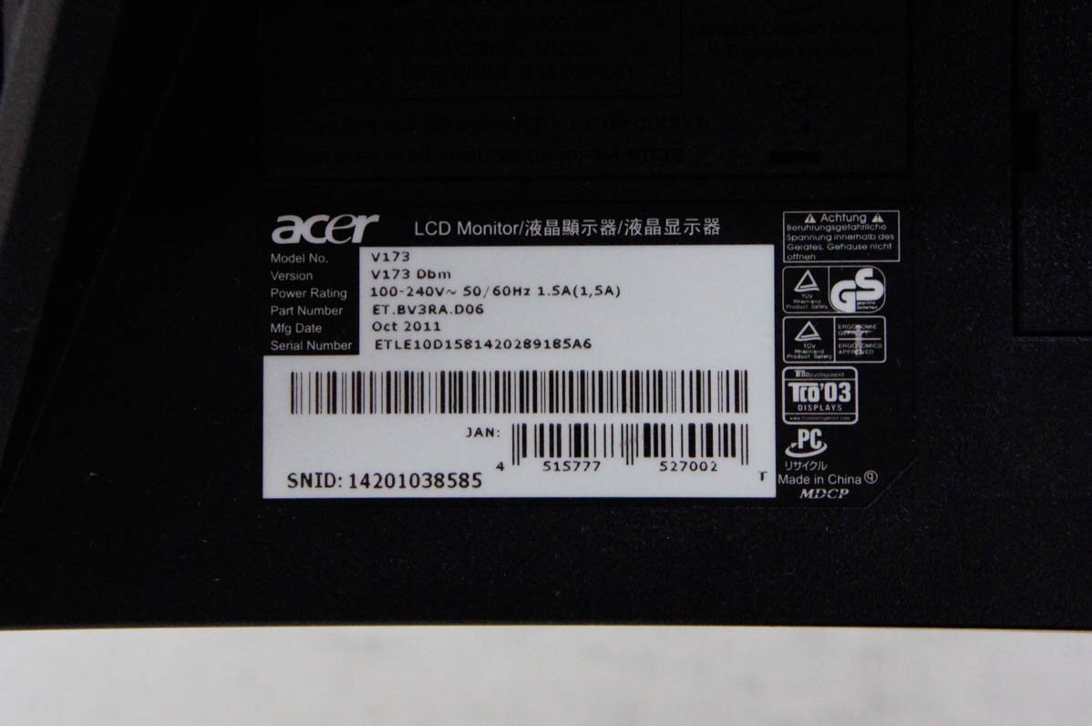 | acer エイサー 17インチ液晶モニター V173Dbm ブラック | |||