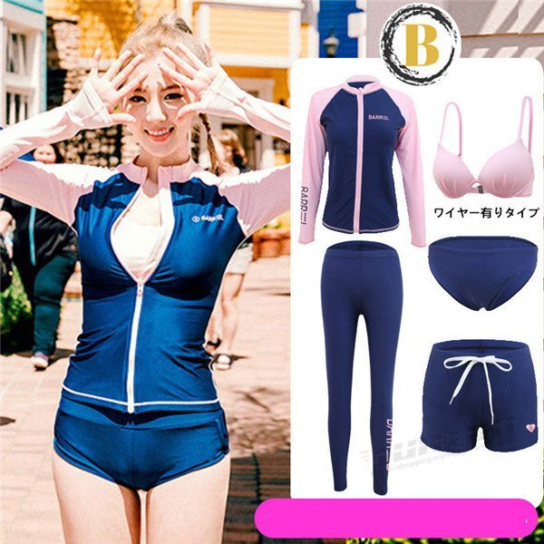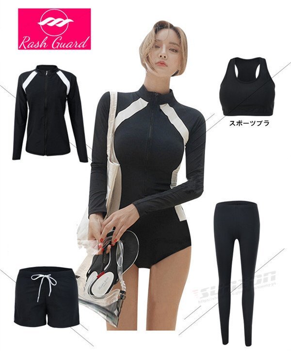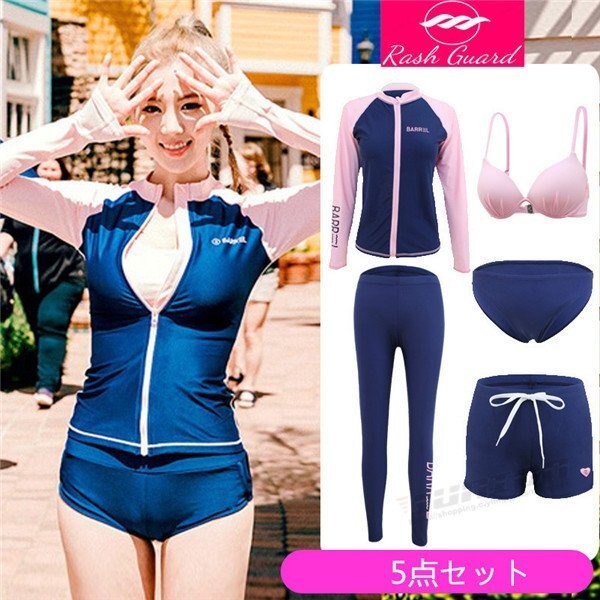 [商品説明]体型カバーとUV対策どちらもかなえるラッシュガード&ラッシュトレンカ付き水着5点セット!それぞれ単品でも使いまわしできてコーディネイトも自由自在!<仕様>●セット内容:ラッシュガード、ブラ、ショーツ、トレンカ、ボトム●品質:ラッシュガード、トレンカ=ポリエステル ポリウレタンブラ、ショーツ、ボトム=ナイロン ポリウレタン、ブラ裏地=ポリエステル100%