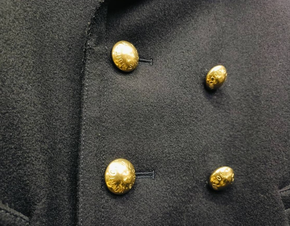 現在、一部の金ボタンをラバーコート加工で黒色にしています。剥がせば金色に戻ります。