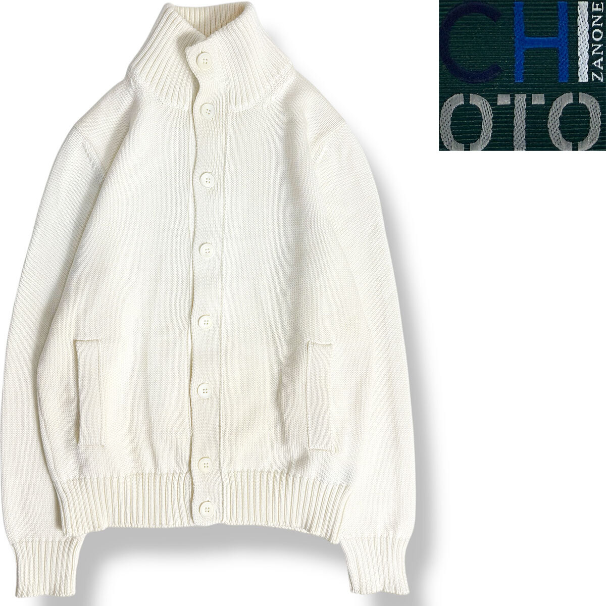 J3588 美品 ザノーネ キョート CHIOTO 5ゲージ ウールソリッドスタンドカラーニットカーディガン アイボリー 48 ZANONE