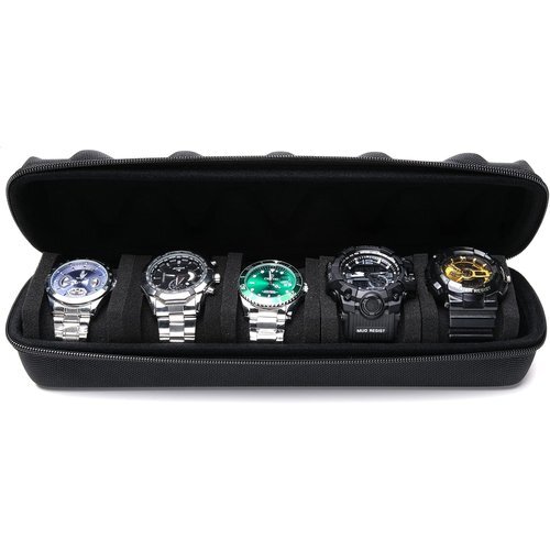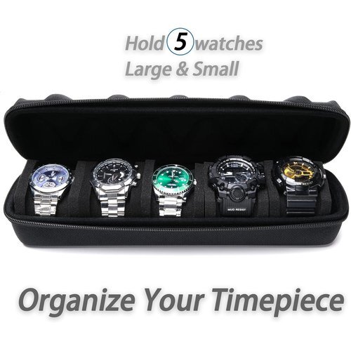 RIGICASE 5スロットハードメンズ腕時計トラベルケース、ポータブルジッパーストレージオーガナイザーボックス、ソフト圧縮フォームピロー付き、大小の時計にフィット ブラック、5スロット  36