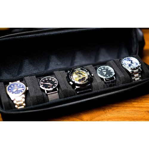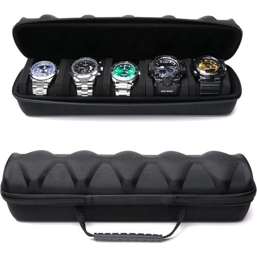 新品★ RIGICASE ブラック、5スロット ムピロー付き、大小の時計にフィット 5スロットハードメンズ腕時計トラベル 36