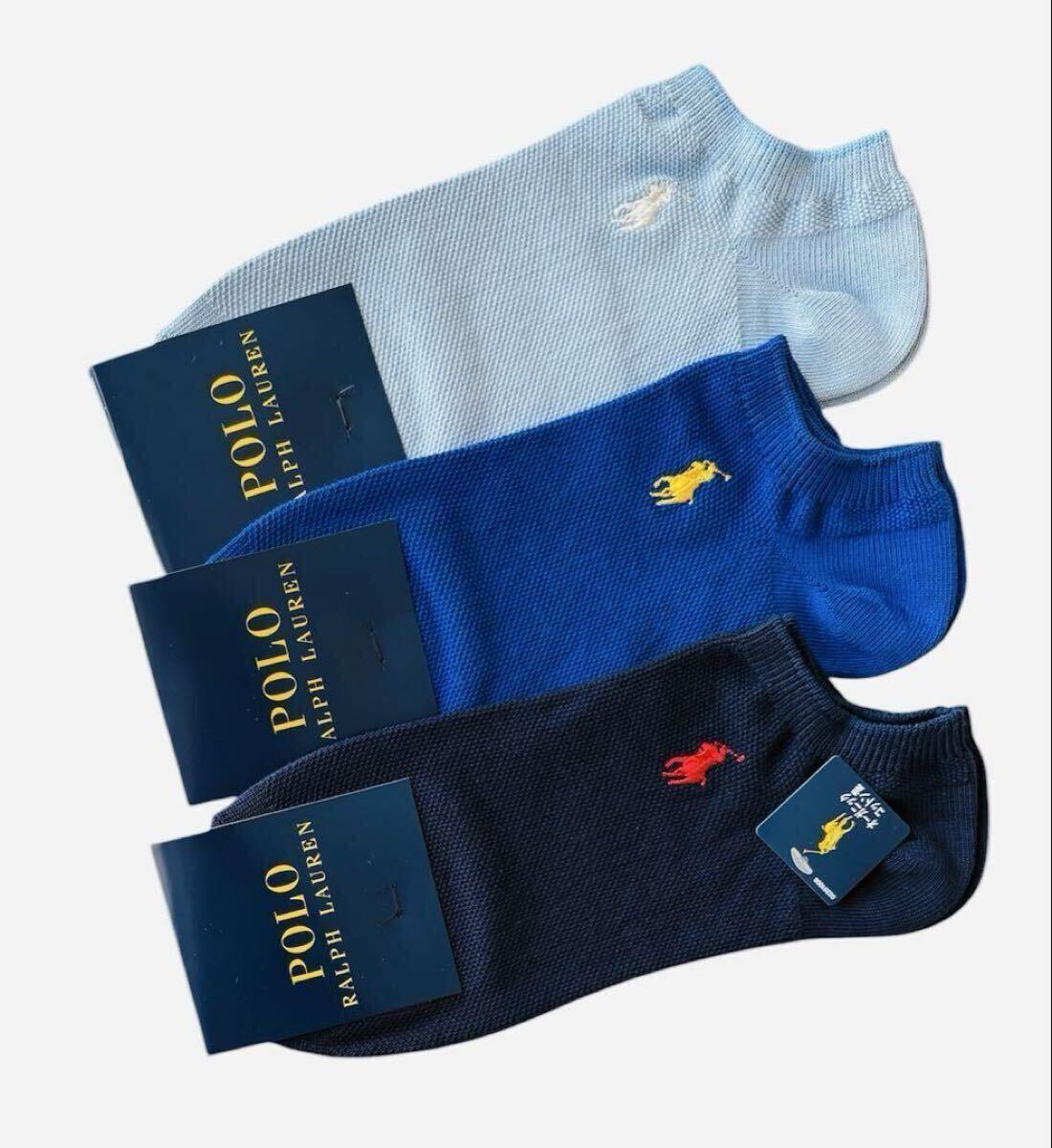 ポロ ラルフ ローレン 鹿の子 カノコ ワンポイント スニーカー丈 ソックス メンズ 3足セット