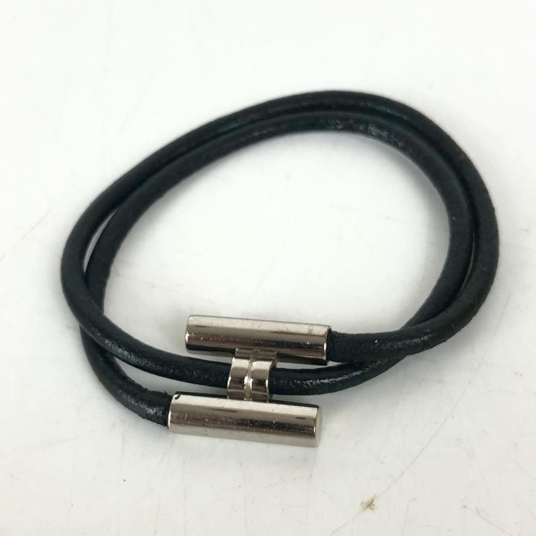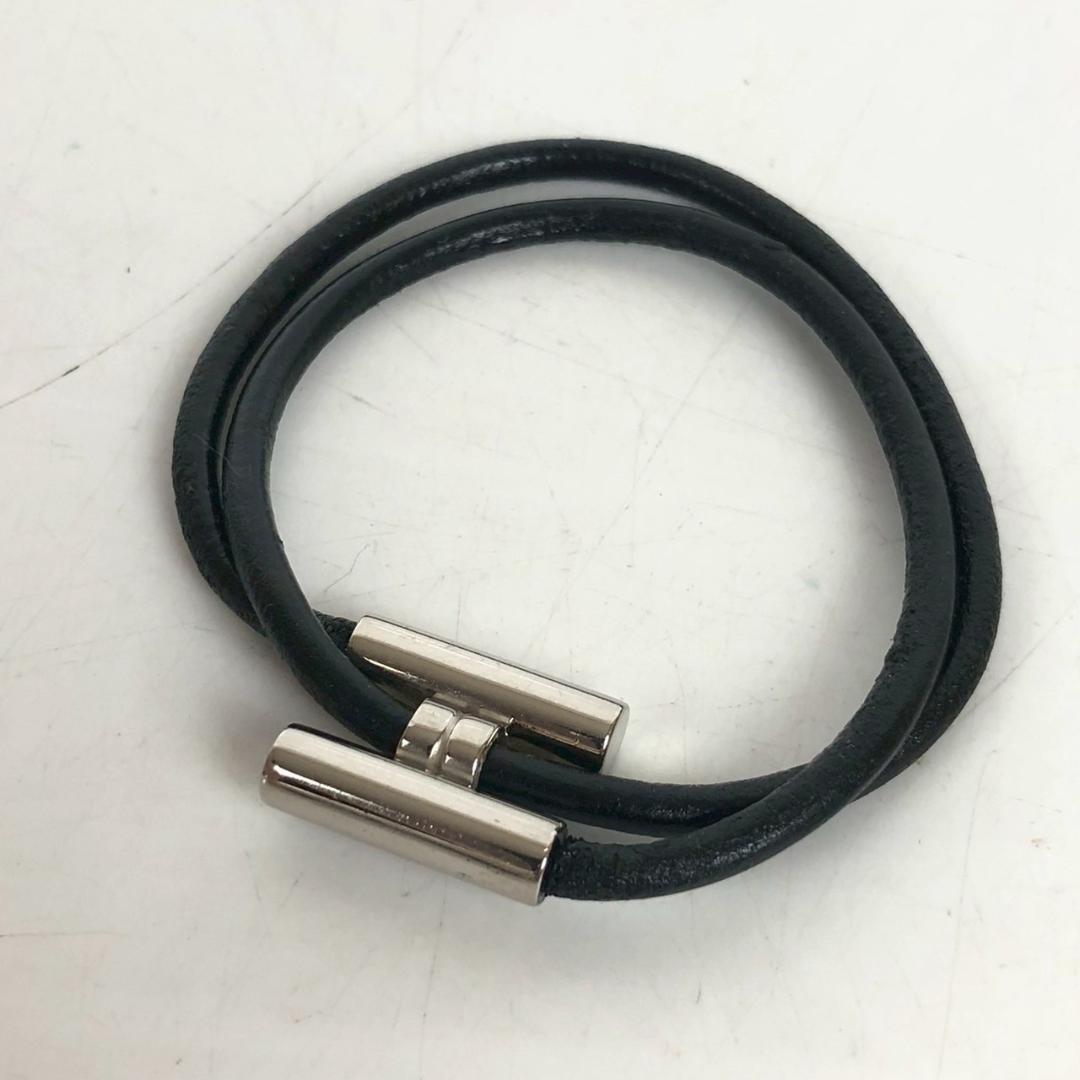 こちらは HERMES エルメス マグネット式 レザー風コード ブレスレット アクセサリー 黒 になります。