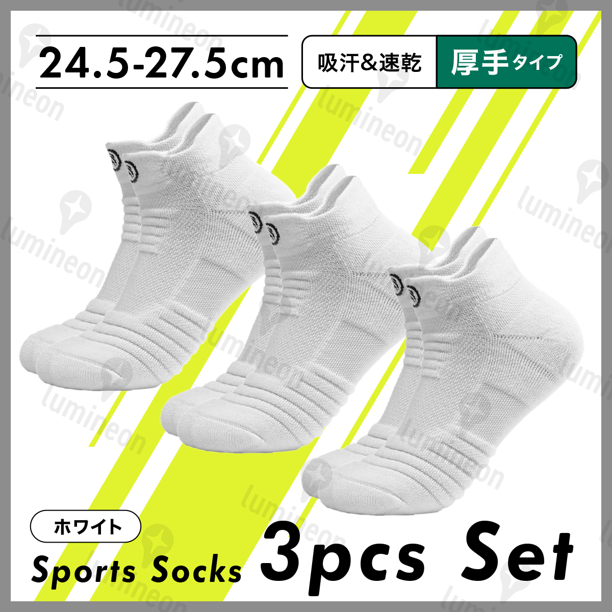 靴下 メンズ ソックス くつした 3本 セット スニーカー 滑り止め くるぶし スポーツ ゴルフ 野球 ソックス バスケット サッカー 白 g117b