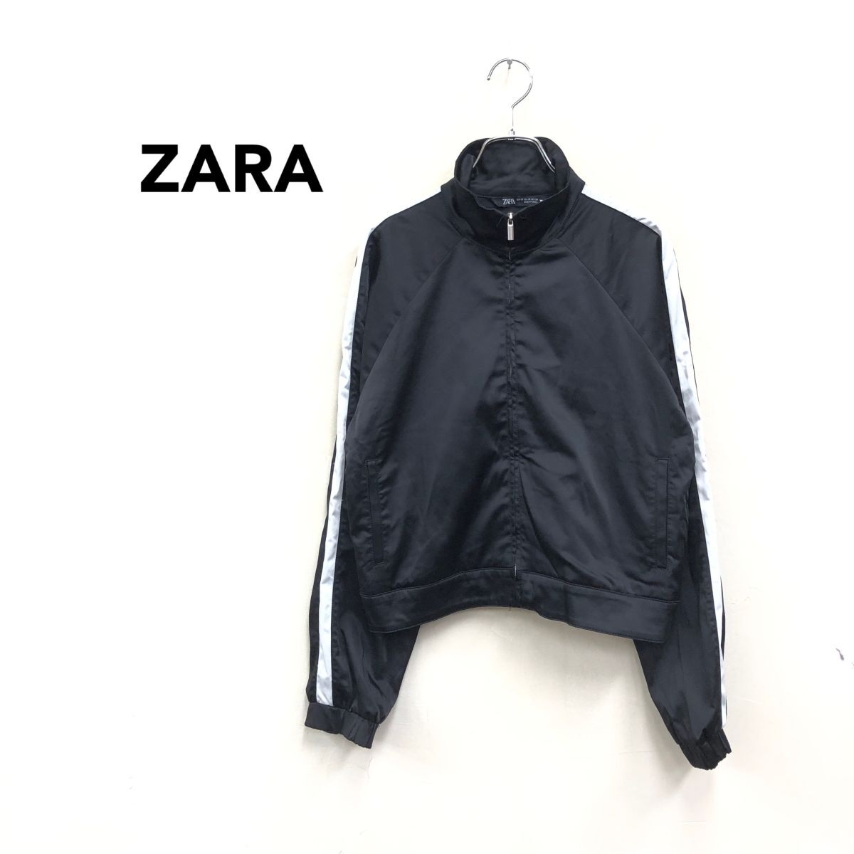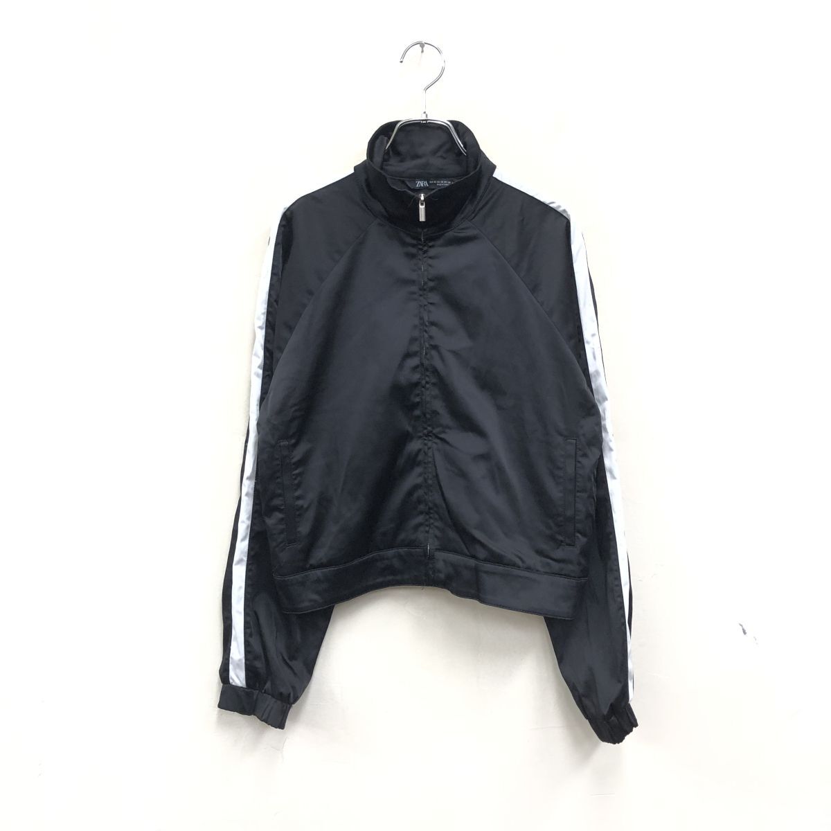 2K1707-Y◆ZARA ザラ クロップドトラックジャケット 上着 フルジップ サイドライン ストレッチ カジュアル ◆sizeXS ブラック ポリエステル
