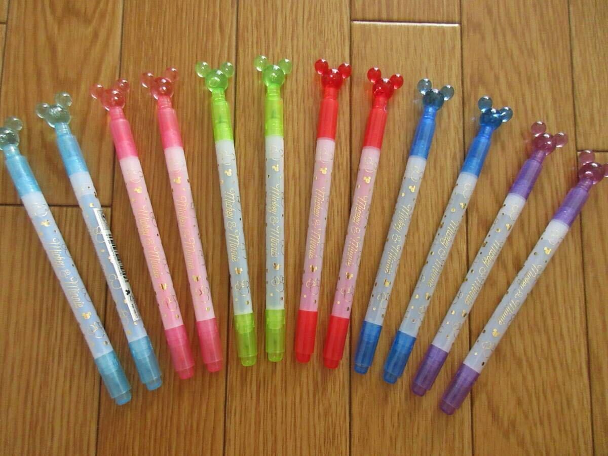 キャップにミッキーのマスコットが付いたかわいいツインペン12本(6色×2本)セットです。